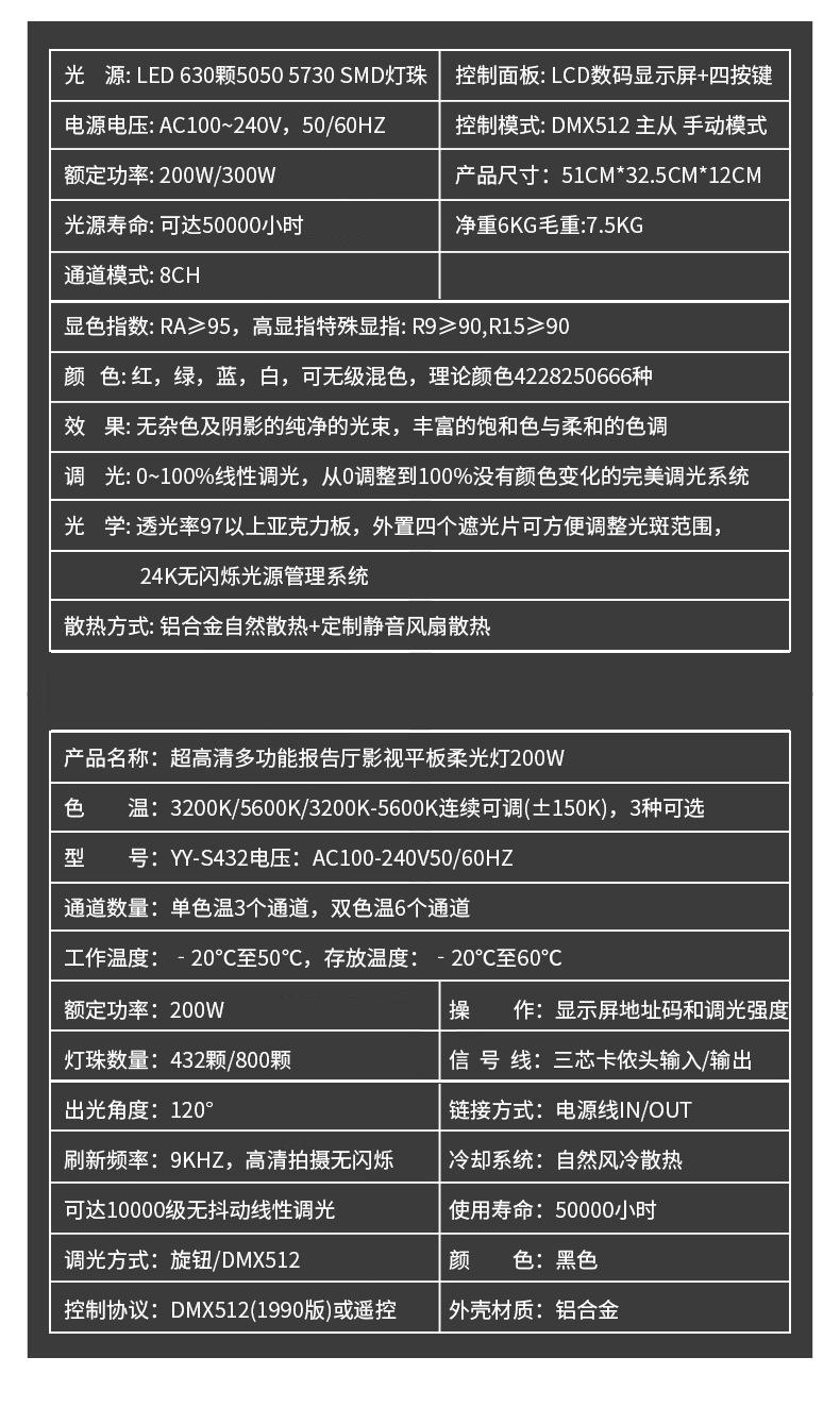 120wrgbw full color three primary colors, 120w two-color soft light, 200w two-color conference soft light, 200...