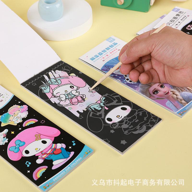 Libro de pintura para rascar con graffitis creativos de Sanrio para niños, colorido y divertido, para jardín de infantes