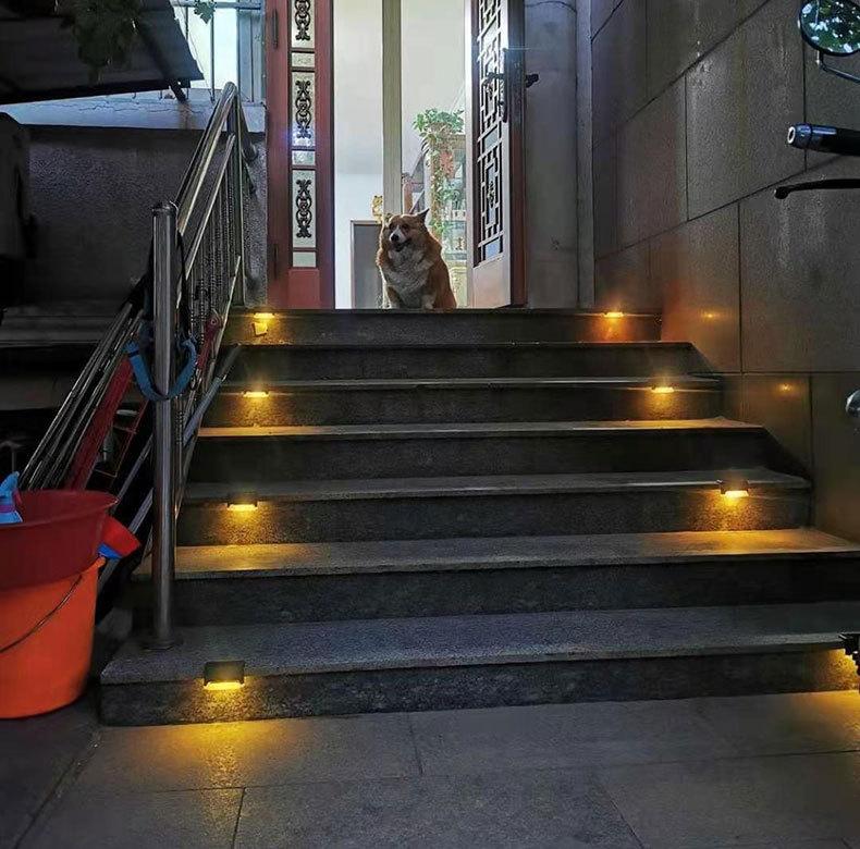 Step lamp black shell warm light (complimentary adhesive and screw package)