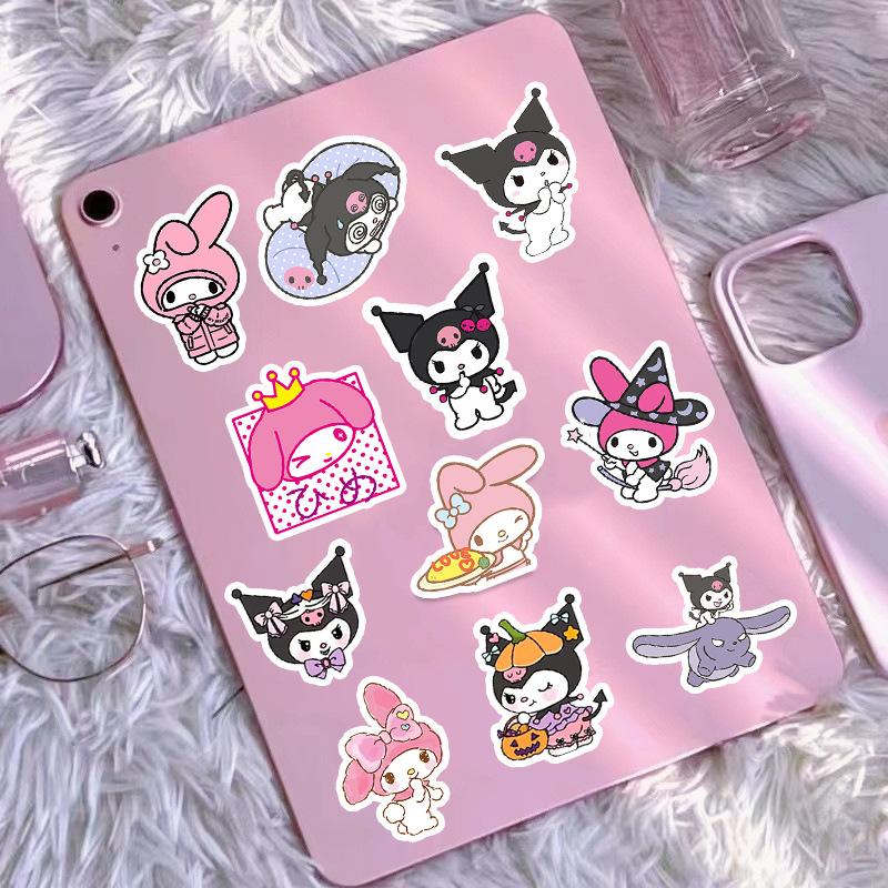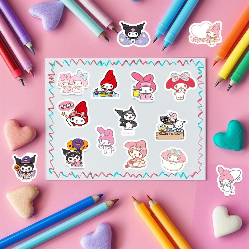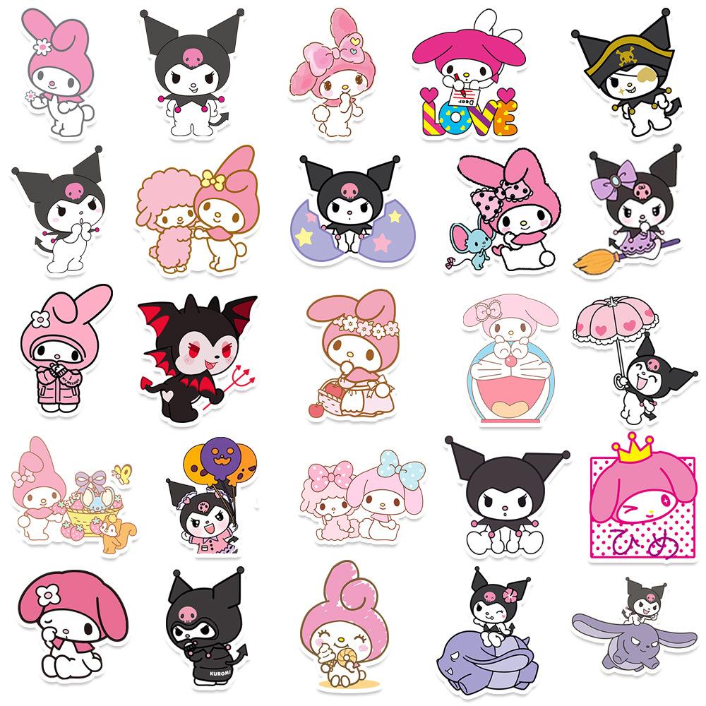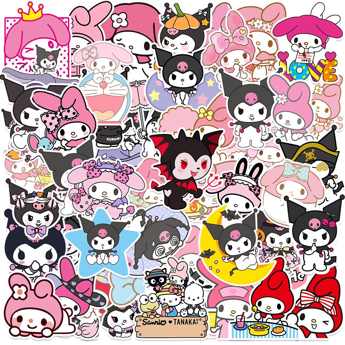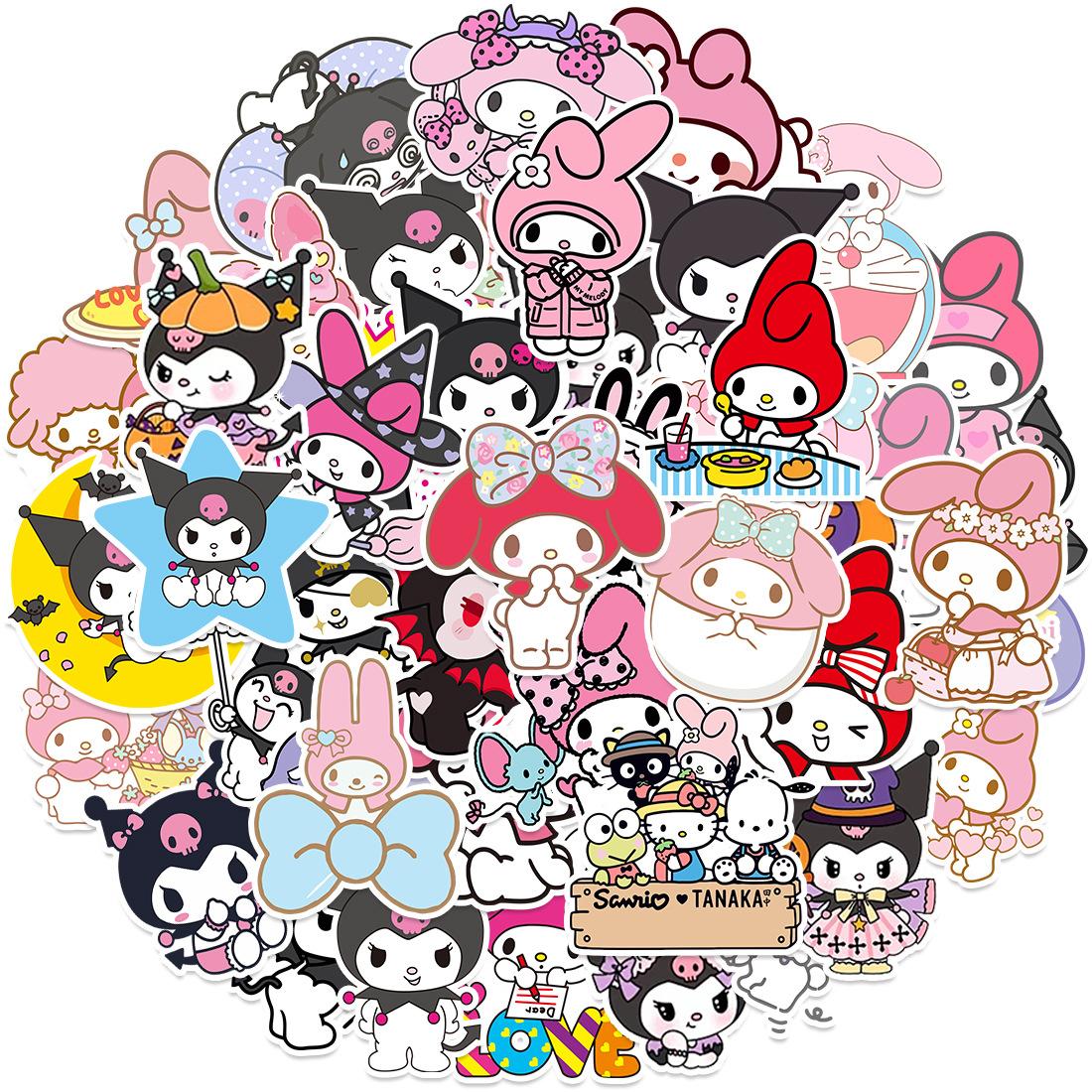 50 pegatinas de Sanrio con melodía, lindas pegatinas de Goo Plate para hacer tú mismo, pegatinas de Goo Card para tarjetas de cuenta de mano, pegatinas impermeables repetidas