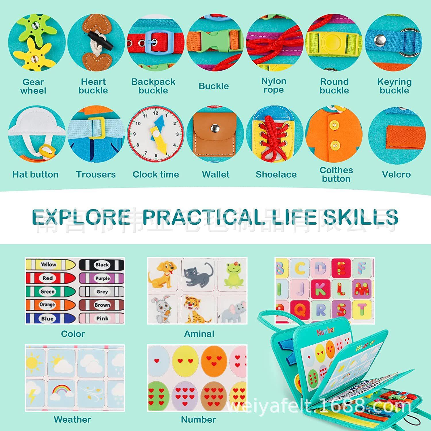 Tablero sensorial de fieltro oferta certificado CE CPC UKCA Montessori Juguetes para la primera infancia al por mayor Tablero de aprendizaje