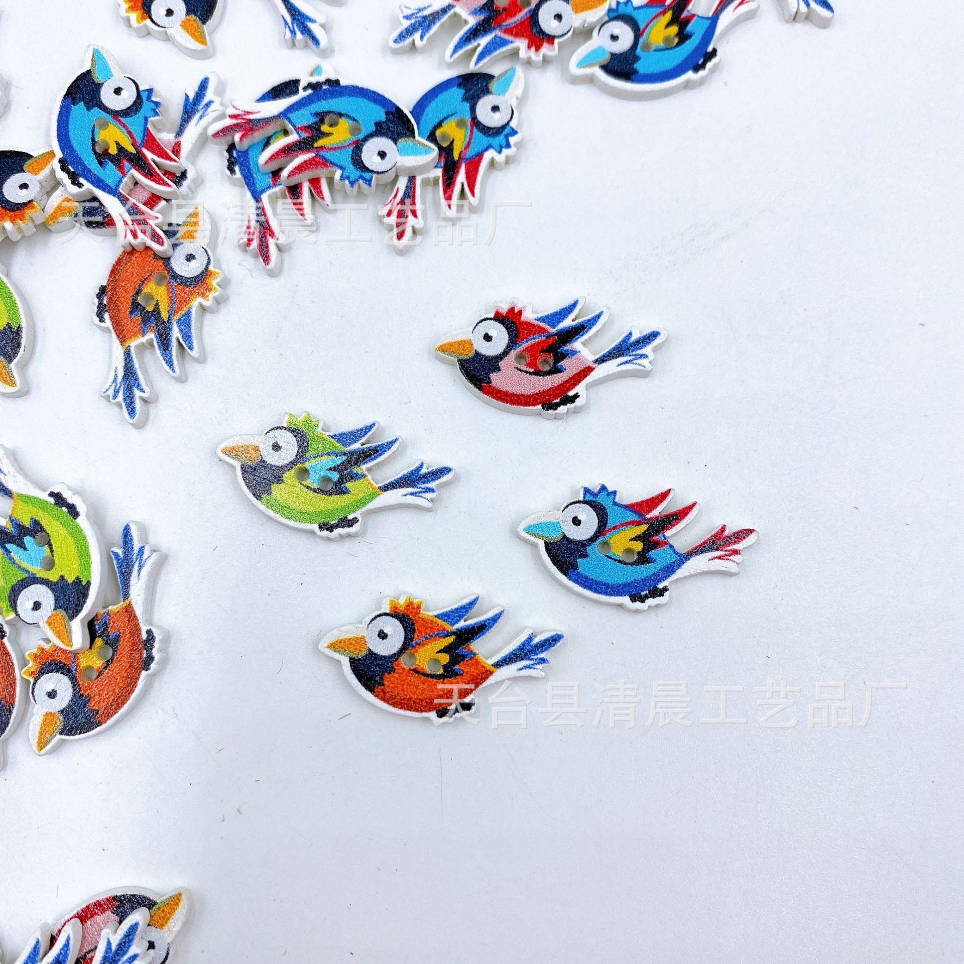 Botones de madera con forma de pájaro, botones de madera pintados con dibujos animados, accesorios decorativos para bricolaje, paquete de 50