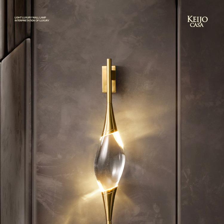 Lámpara de pared de cristal de cobre posmoderna simple para pasillo, decoración creativa de diseño, pasillo, sala de estar, dormitorio, lámpara de noche