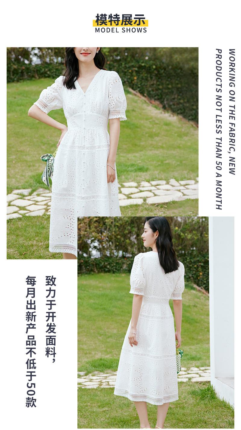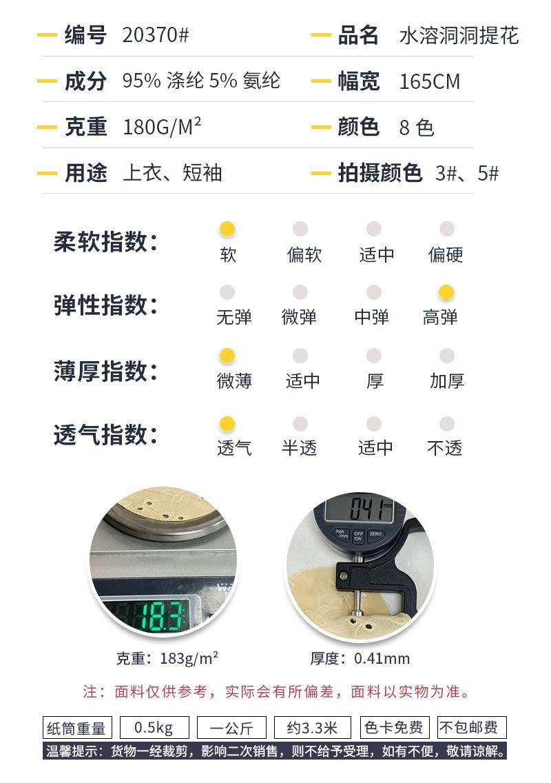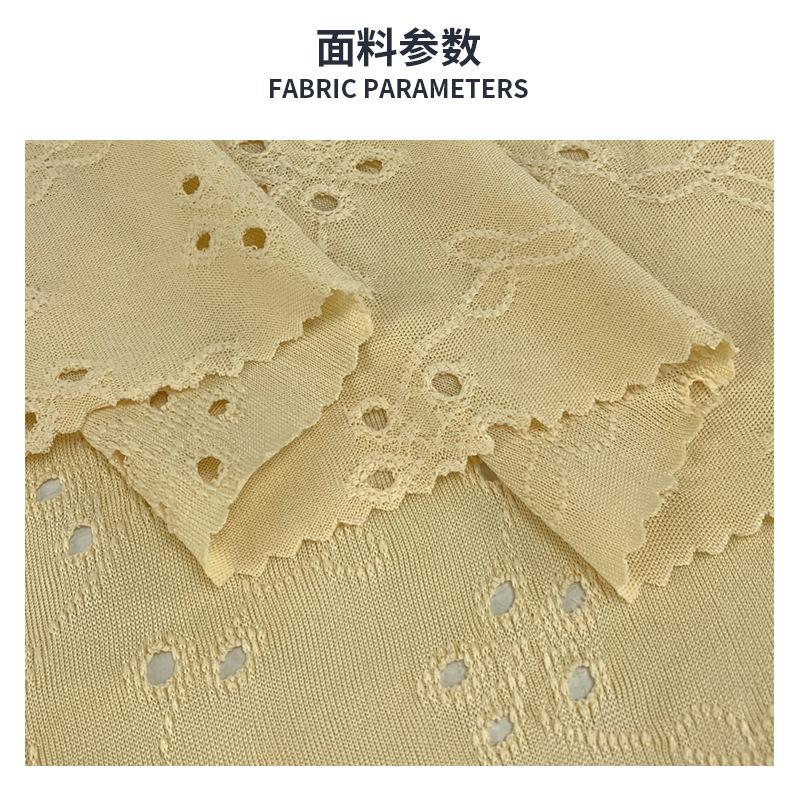 Tela hueca de poliéster soluble en agua con agujeros jacquard de alta elasticidad de 180 g, tela de punto bordada de imitación para vestido de mujer en stock
