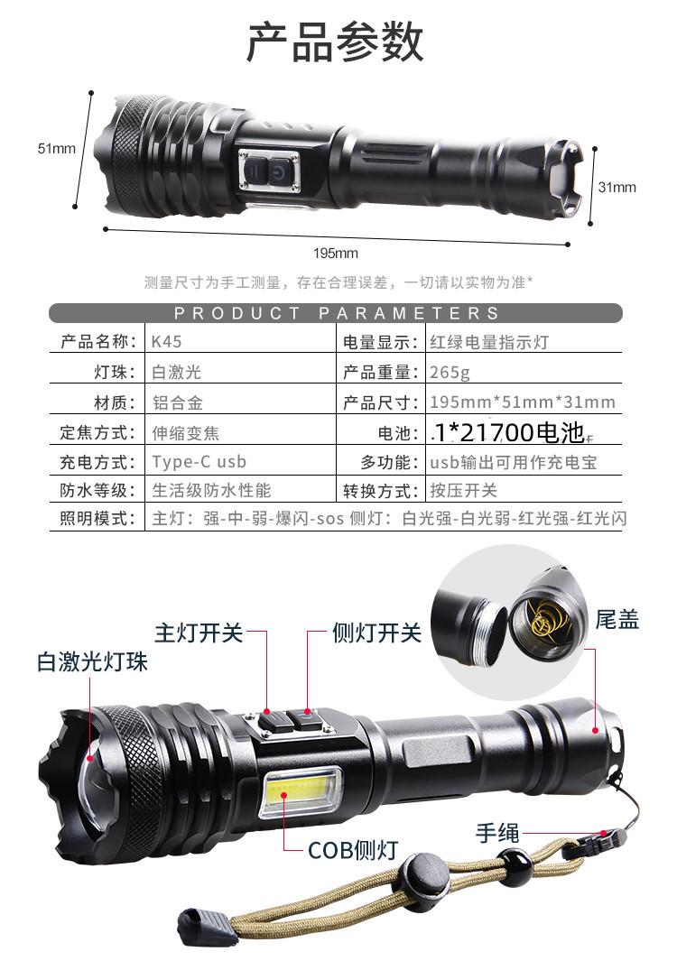 El paquete incluye: linterna + cuerda de cola + caja de piel de vaca + cable USB