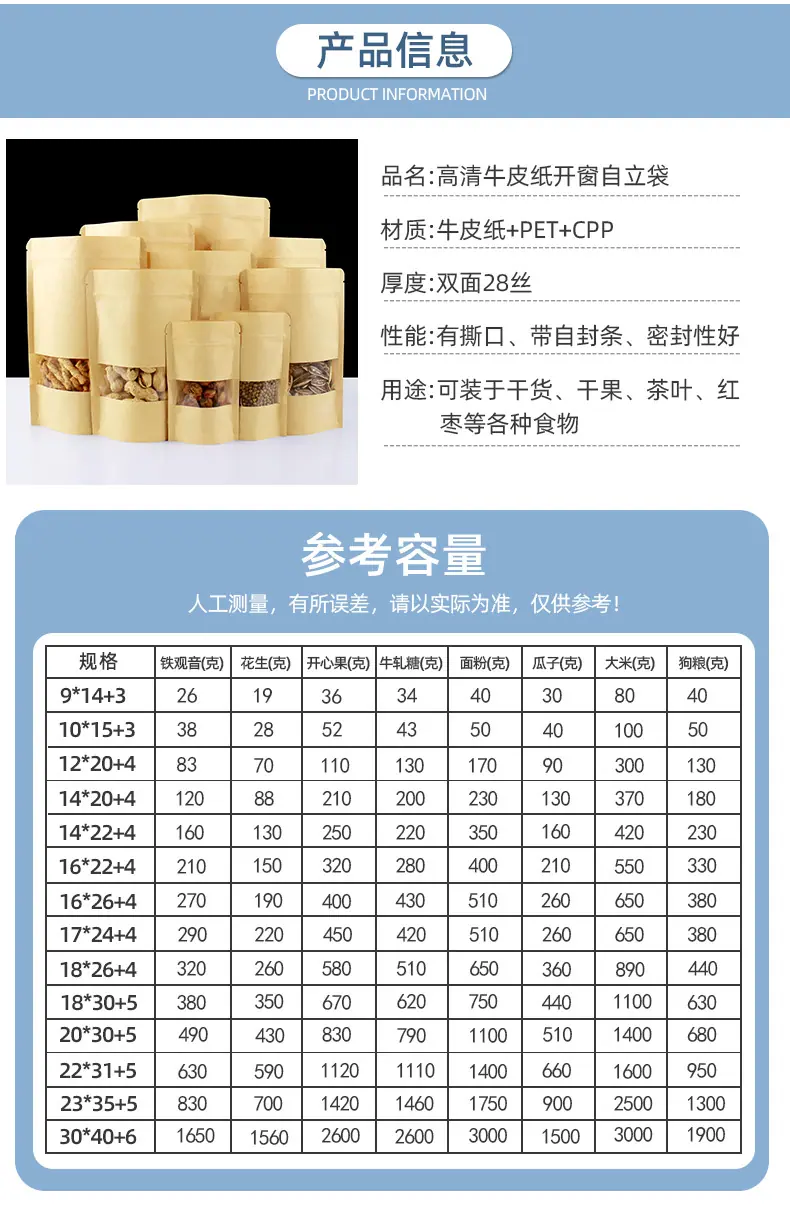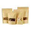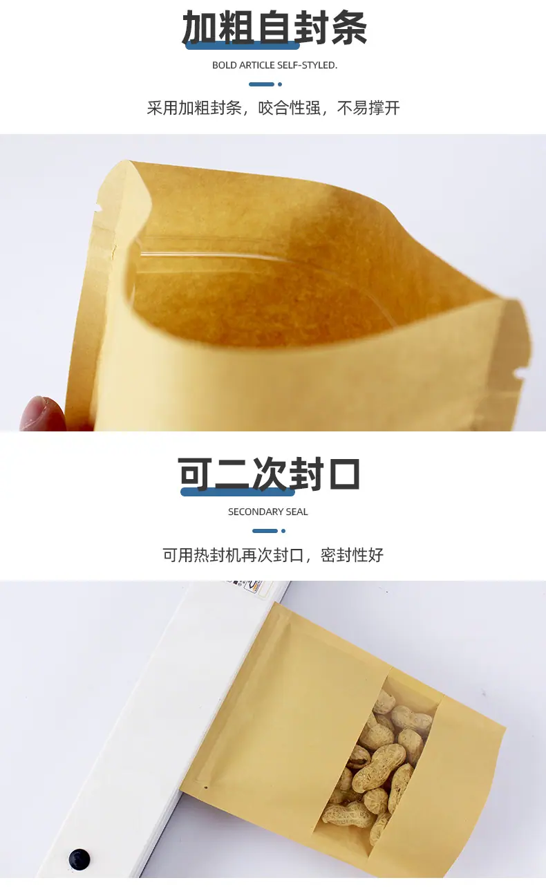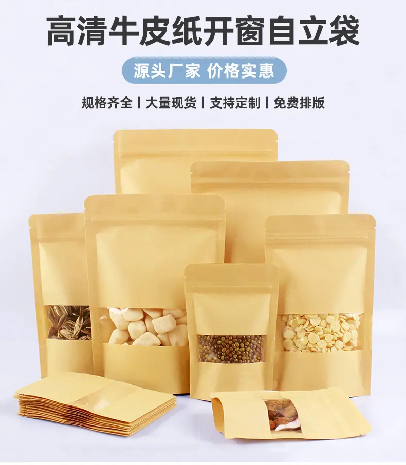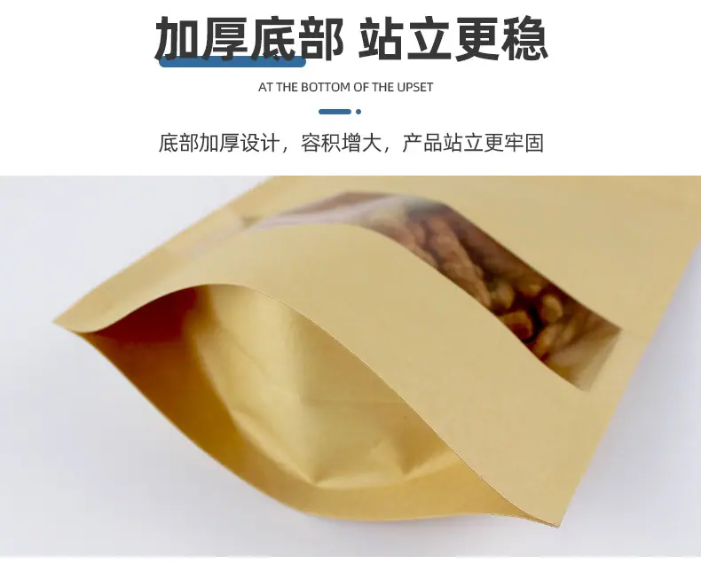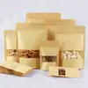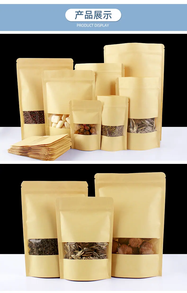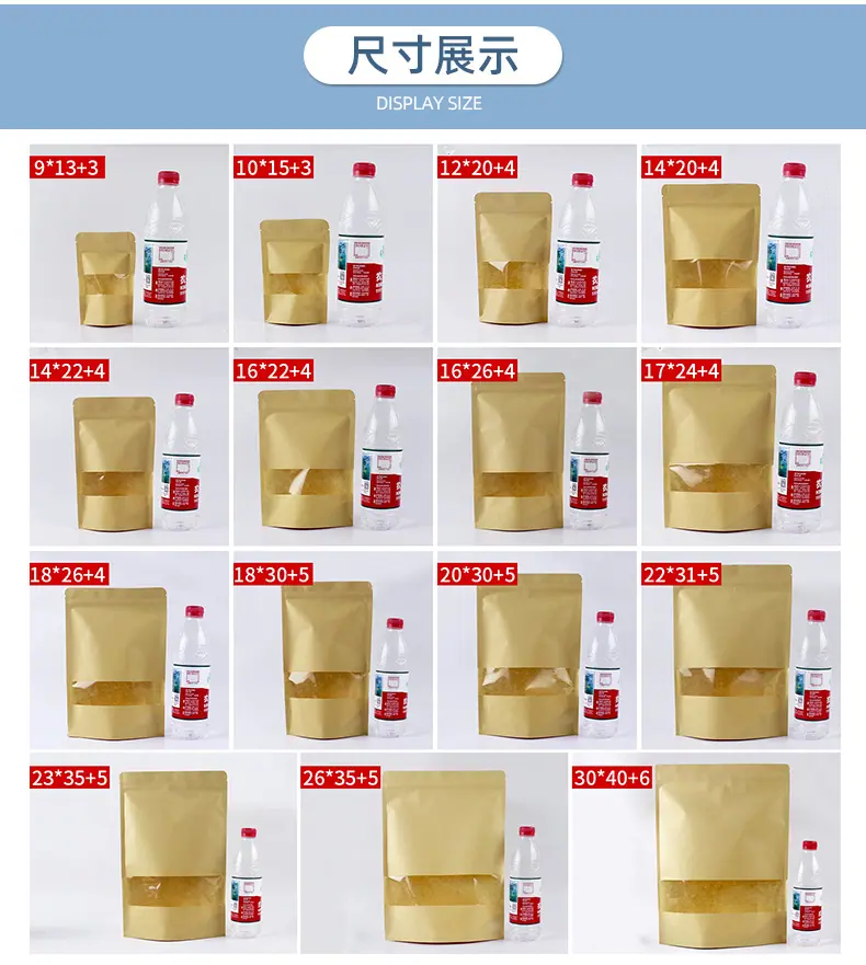 Bolsa de papel kraft con ventana de 16 x 26 + 4 pulgadas, bolsa para alimentos secos, bolsa con cierre hermético, bolsa de papel kraft independiente