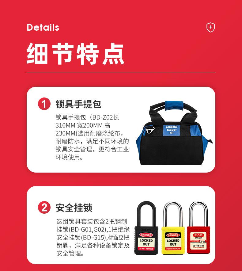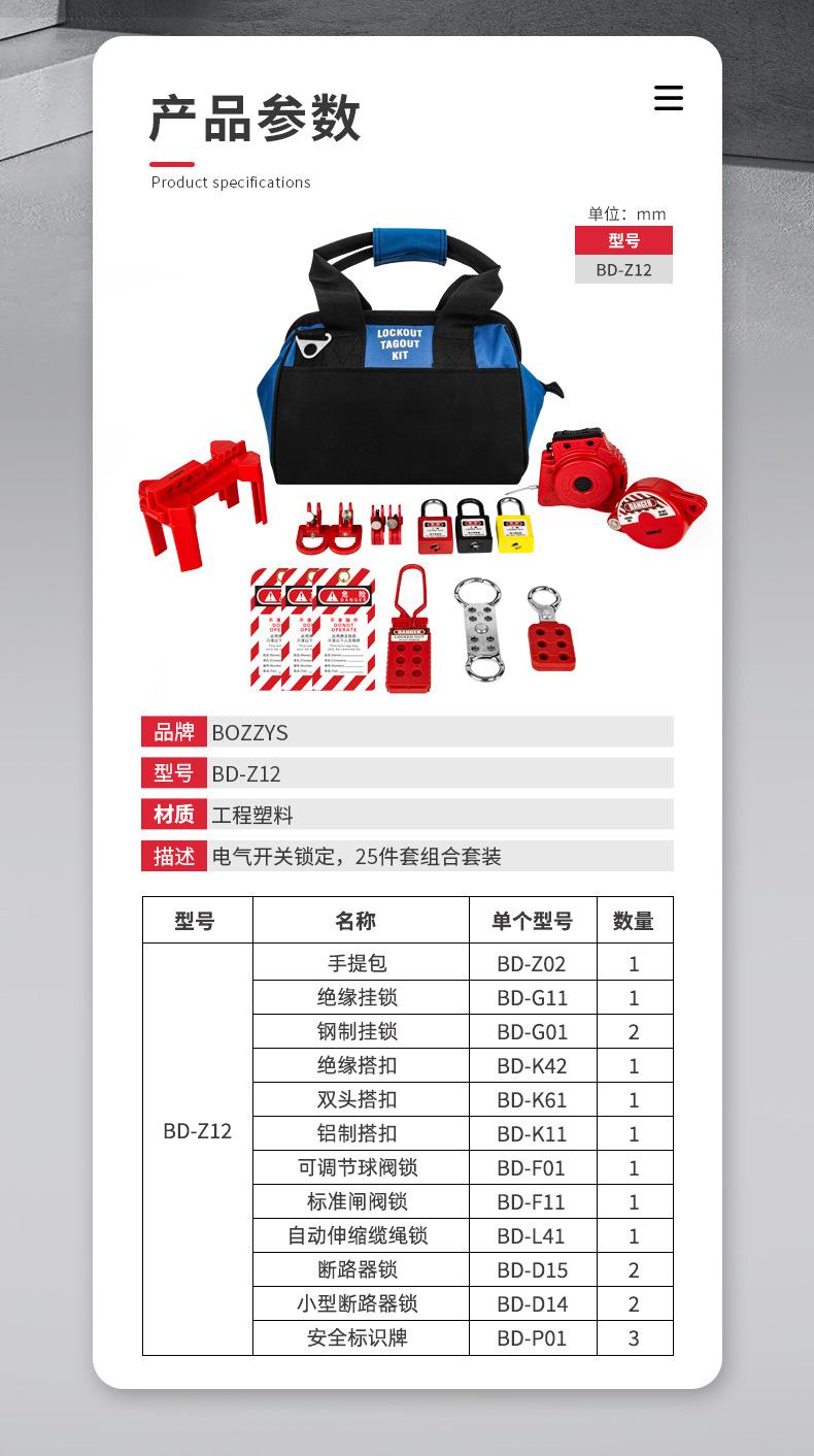 Bozzys Candado de Seguridad Industrial Equipo de Bloqueo Aislamiento de Energía Paquete Combinado Candado Válvula Set Bd-Z12