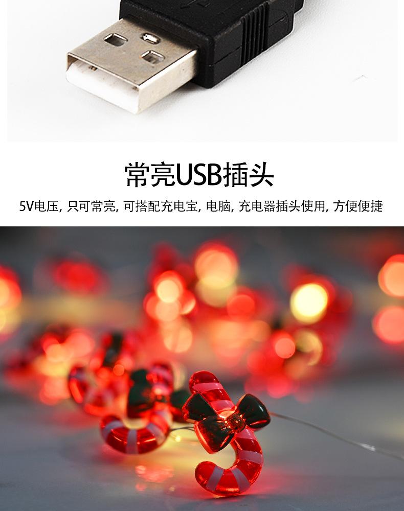 Guirnalda de luces LED navideñas transfronterizas con muletas rojas, ambiente festivo, decoración para árbol de Navidad, guirnalda de luces coloridas