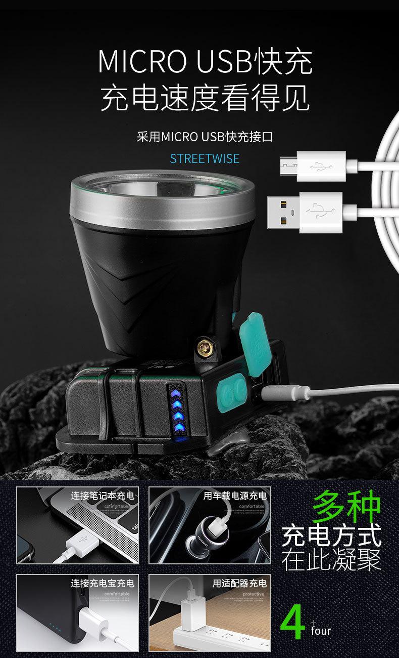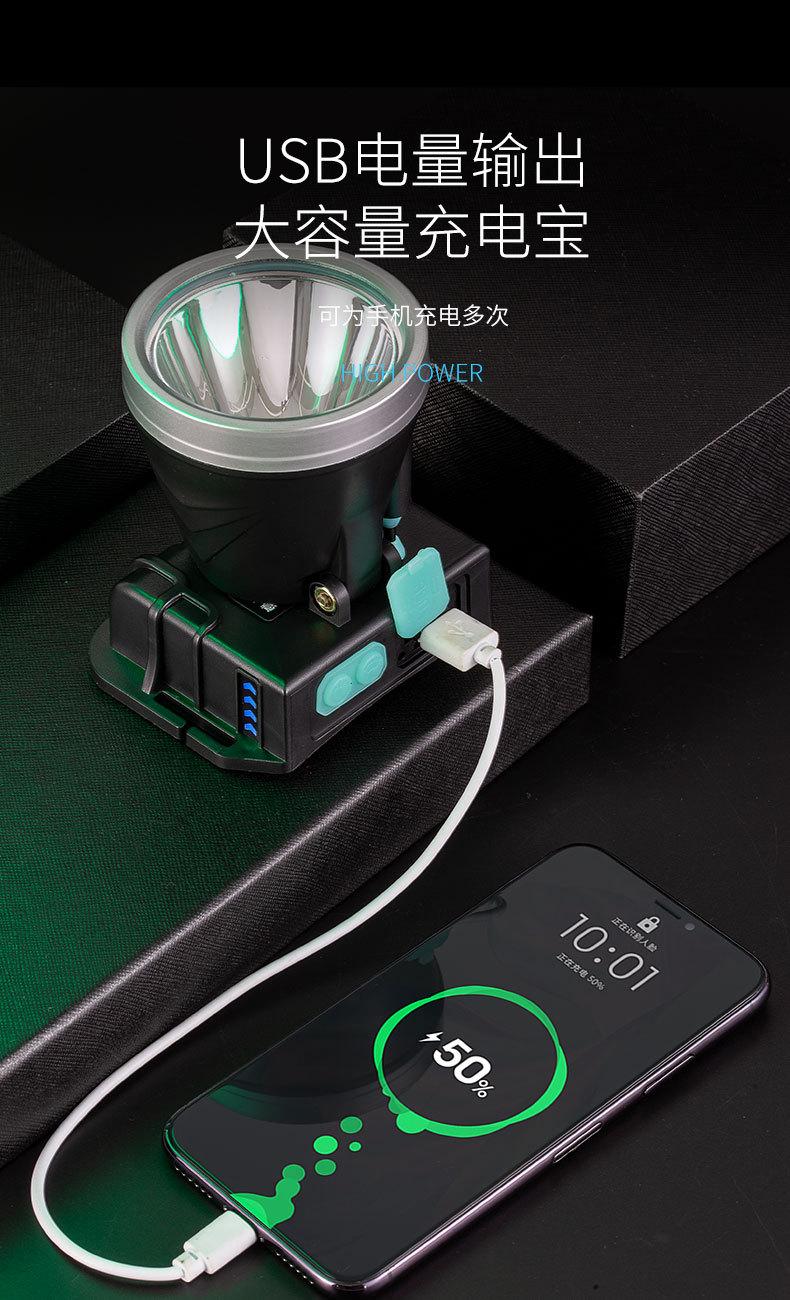 | Nuevo faro LED de luz potente transfronterizo con carga USB tipo c, aleación de aluminio, zoom exterior, iluminación de largo alcance. | |