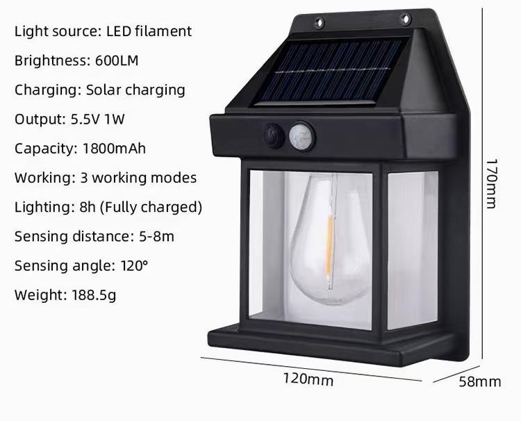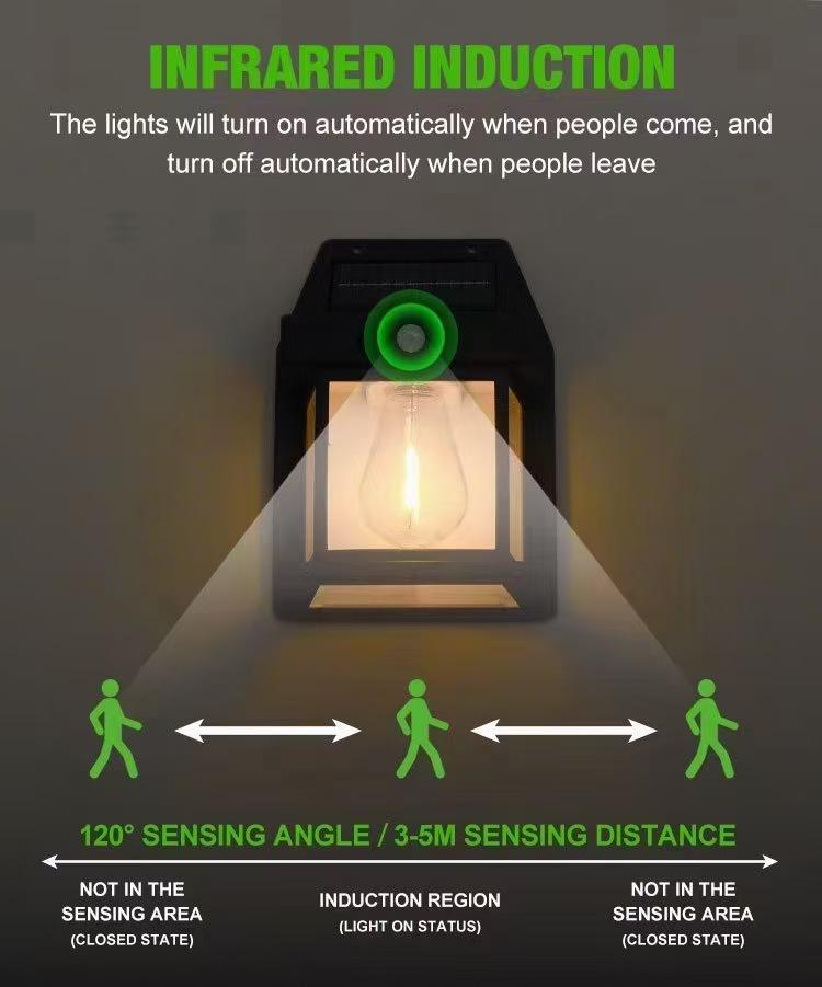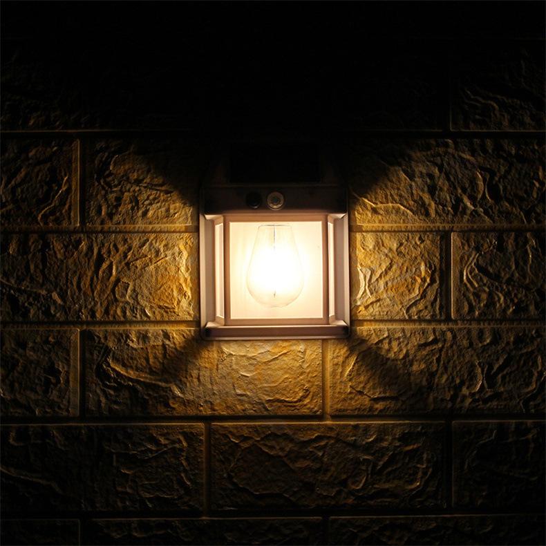 Nueva lámpara de pared solar transfronteriza con detección de movimiento, lámpara de pared de alambre de tungsteno impermeable, lámpara de noche para jardín, lámpara de atmósfera