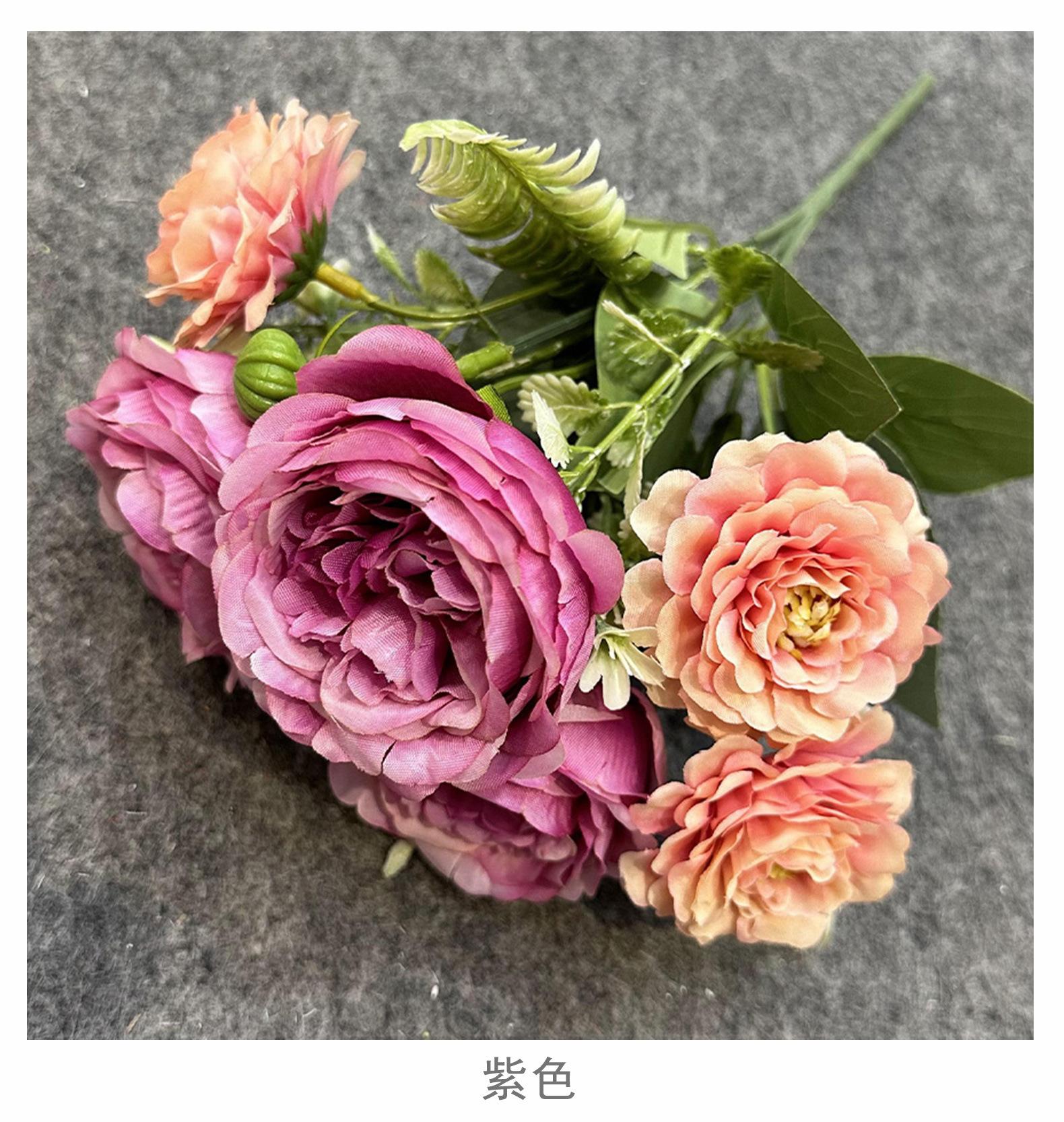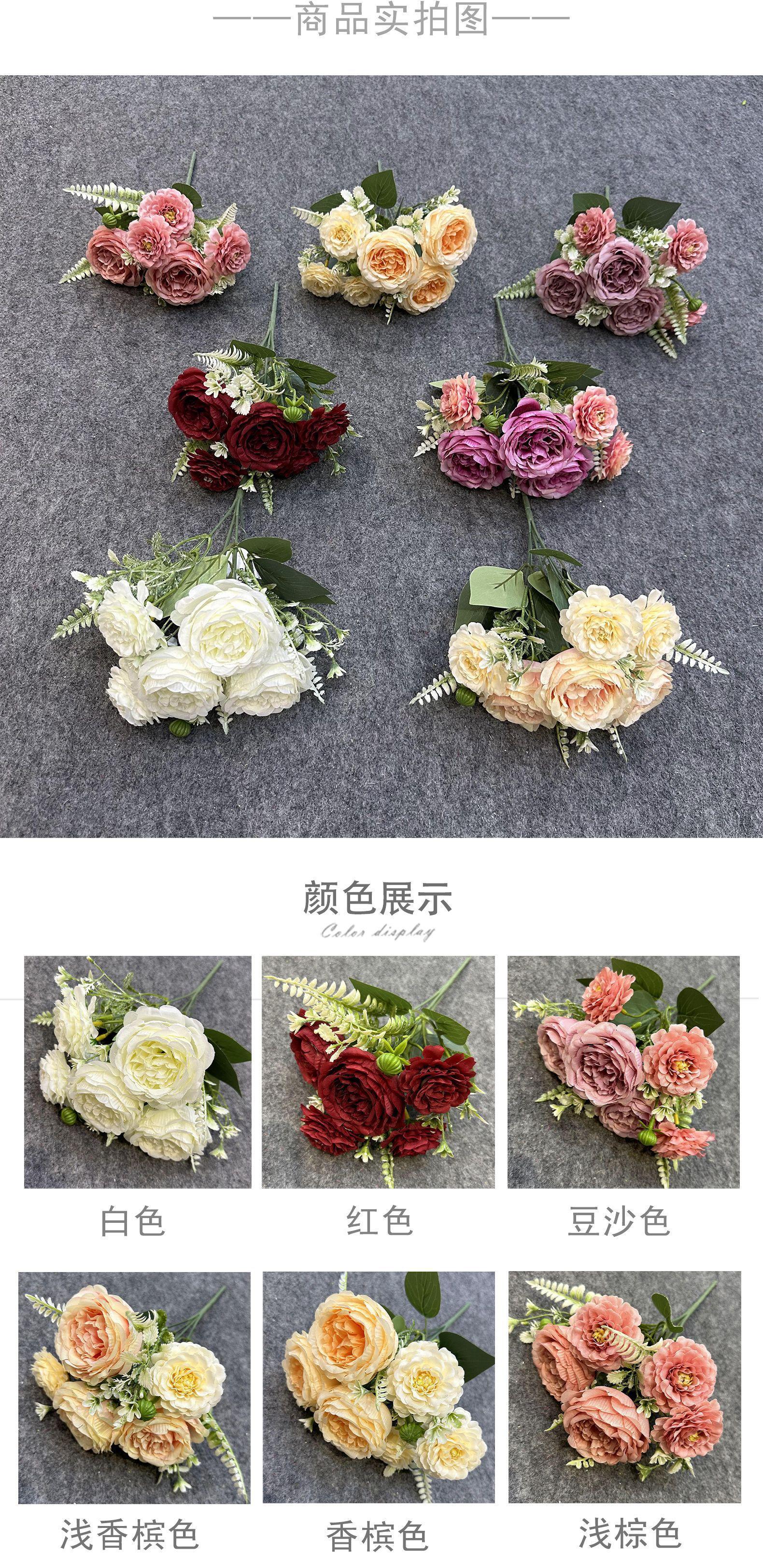 Simulación Combinación Peonía Ramo Falso Flor de Boda Flor de Seda Artificial de Alta Gama Adornos Terminados Flor Decorativa para Sala de Estar