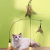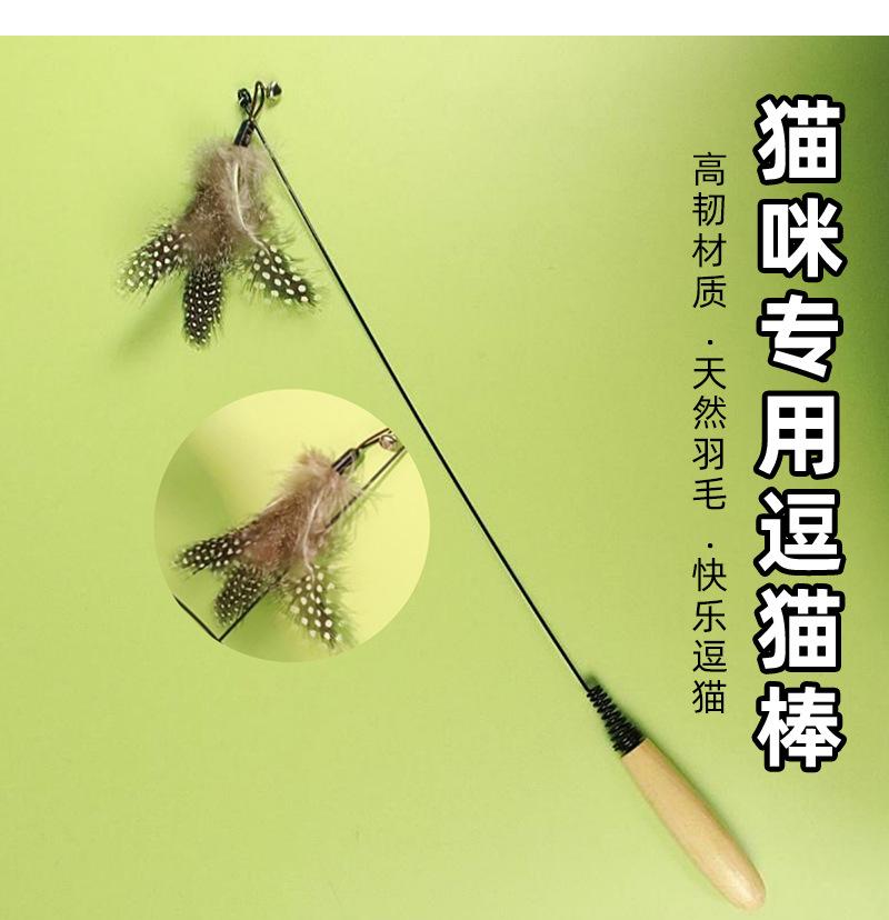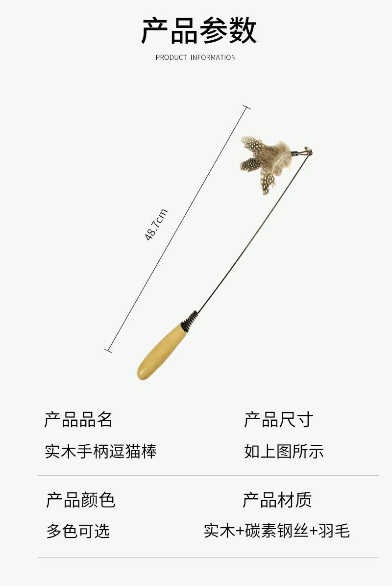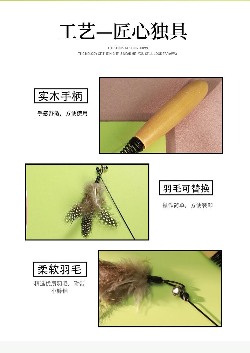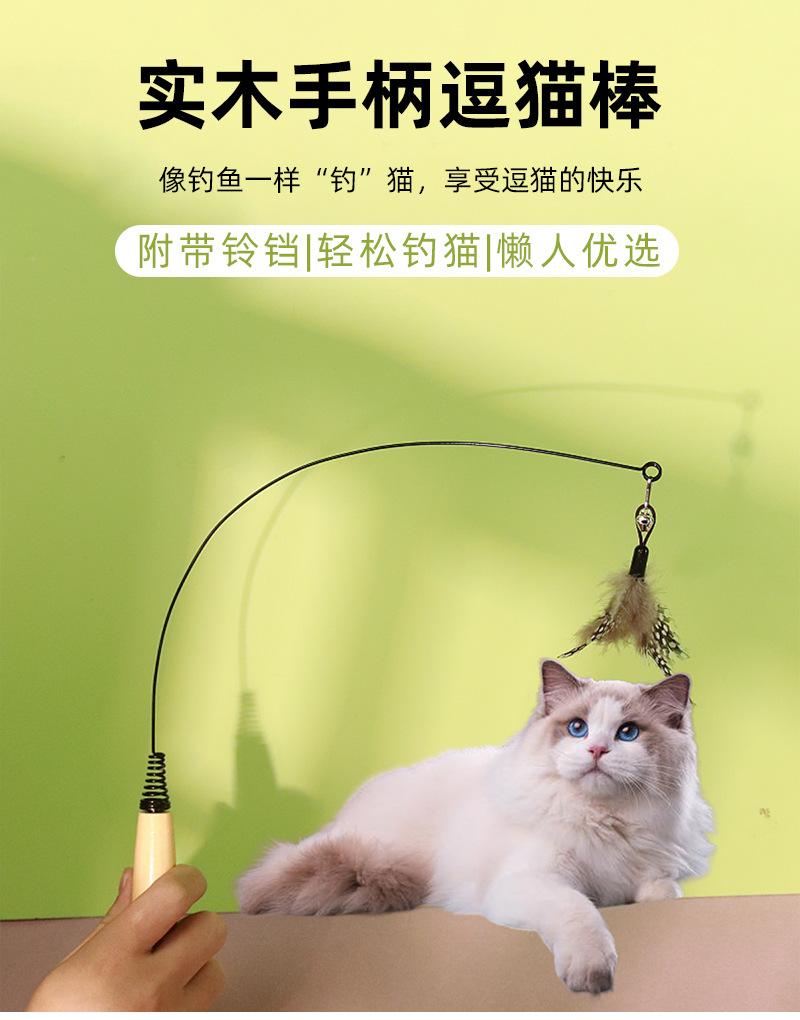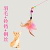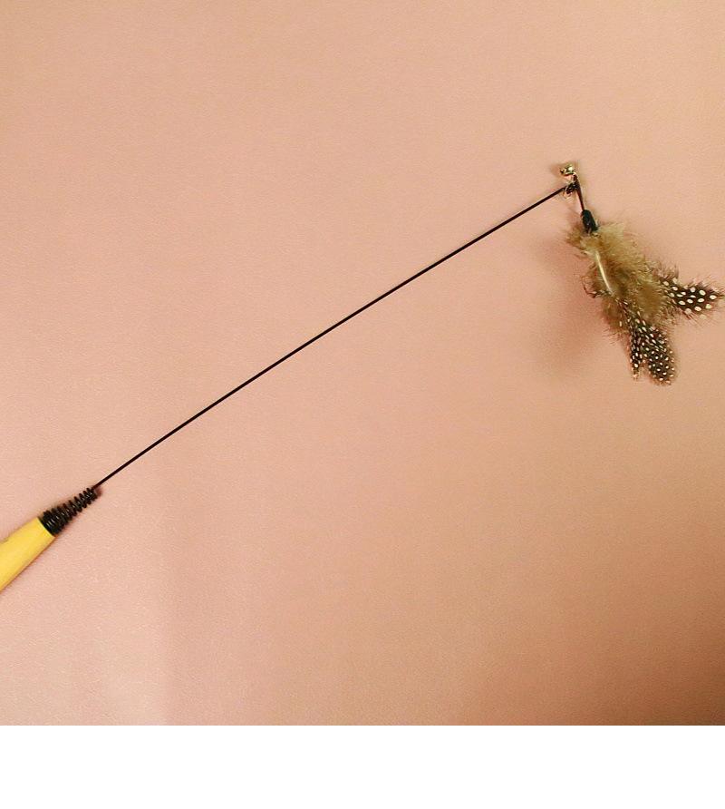 Fabricante de Juguetes para Gatos Venta al por Mayor Mango de Madera Maciza Resorte de Alambre de Acero Varita Teaser para Gatos Cabeza de Repuesto Pluma Sonido de Campana Palo Teaser para Gatos