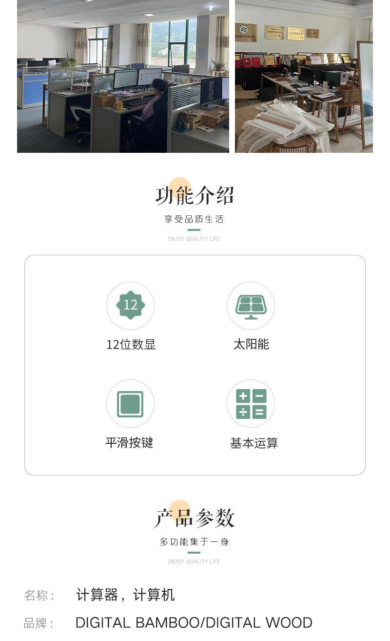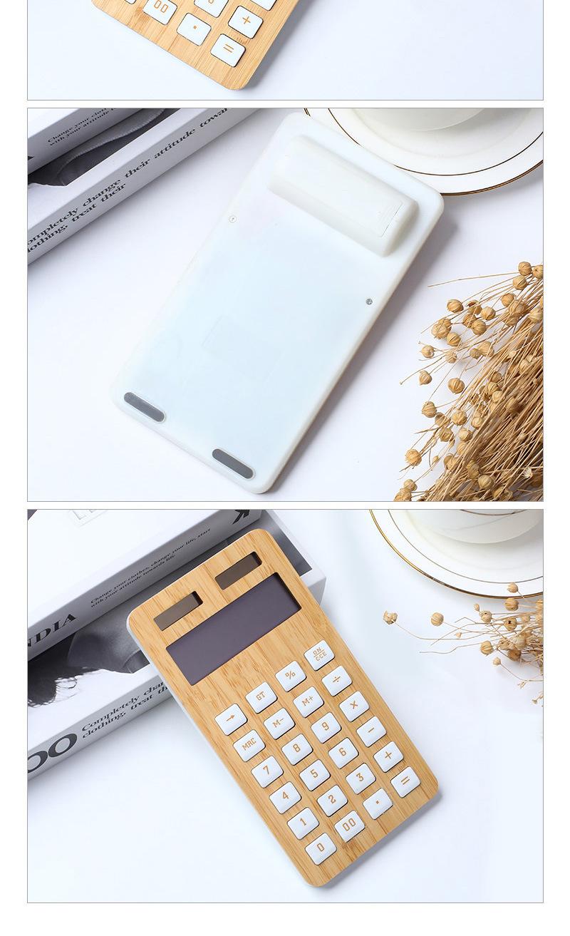 Calculadora de madera de bambú con pantalla digital de 12 dígitos, calculadora aritmética electrónica solar, para contabilidad, finanzas, escritorio, suministros de oficina