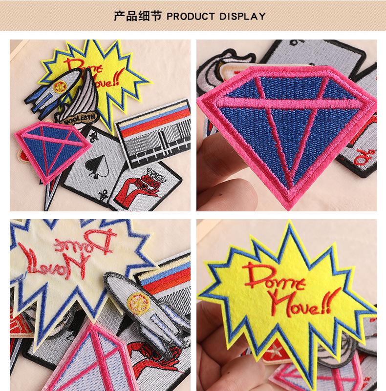 [Nota] Los parches con lentejuelas, cuentas, pedrería, flores de seda, bolas de pelo y bordados con hilo metálico deben plancharse primero por detrás y luego recortarse por delante, una vez fijados firmemente. Esto evitará dañar las lentejuelas u otros accesorios de la parte delantera. Mantenga la ropa (u otros textiles) seca y no rocíe agua sobre los parches de tela ni sobre la ropa con la plancha al plancharlos. Una vez planchado, el parche de tela generalmente se adhiere bien a la ropa (u otros textiles) durante mucho tiempo. Si el parche se desprende después de un tiempo o después del lavado, significa que la temperatura de la plancha es demasiado baja o el tiempo de planchado es demasiado corto. Puede repetir la operación original y planchar el parche de nuevo.