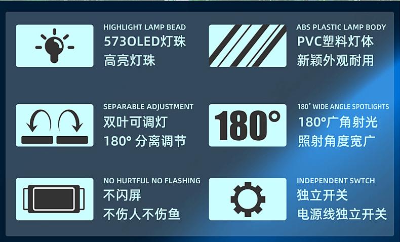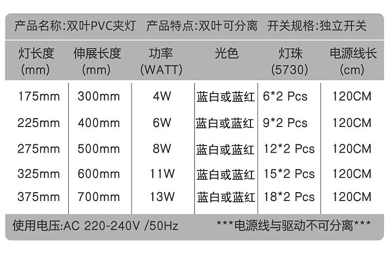 4w blue and white double-leaf clip light (suitable for 19-35cm fish tank), 6w blue and white double-leaf clip ...
