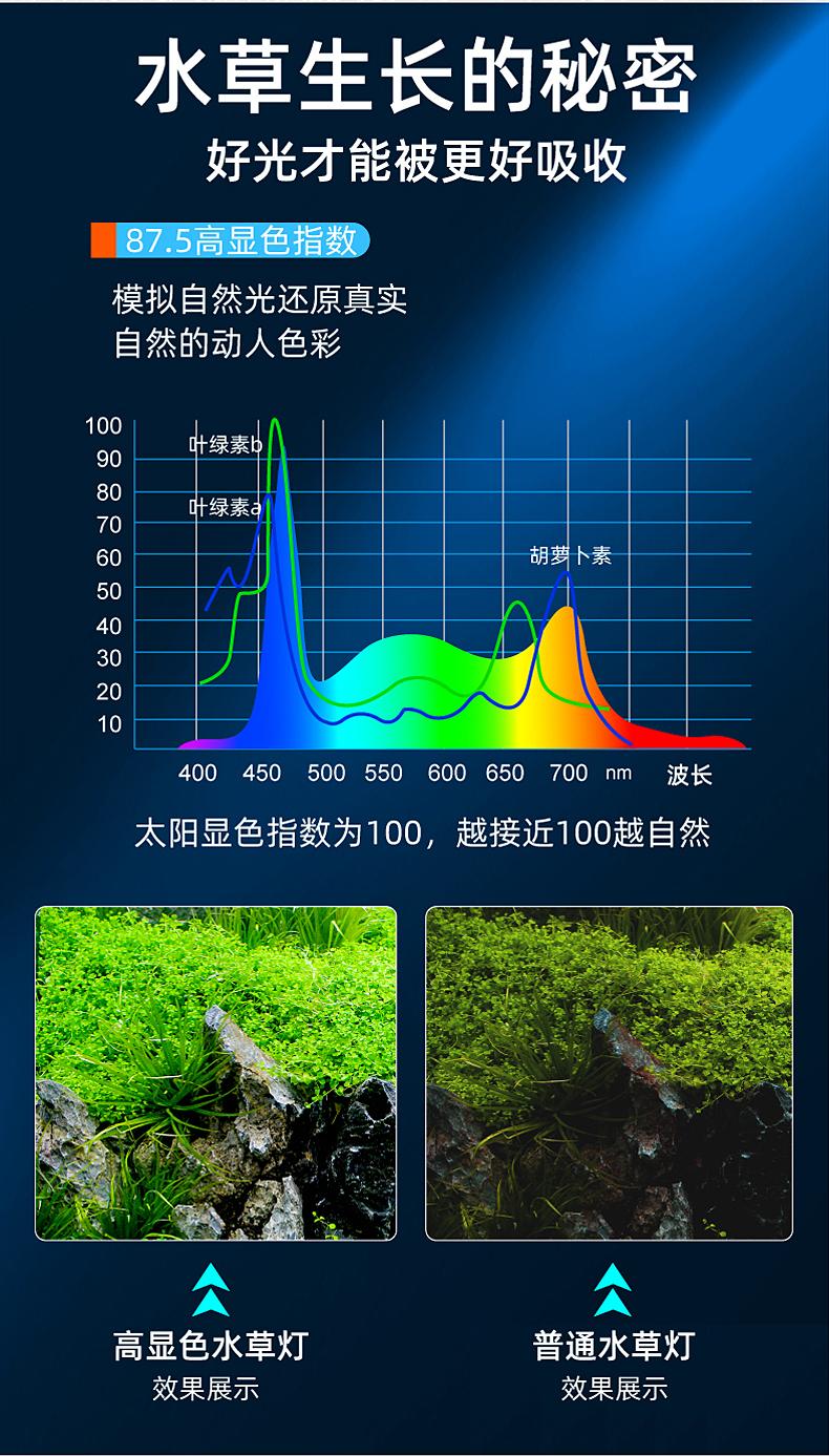 Lámpara LED de césped para acuario, espectro completo, resistente al agua, superbrillante, con clip, iluminación especial ornamental para acuario pequeño