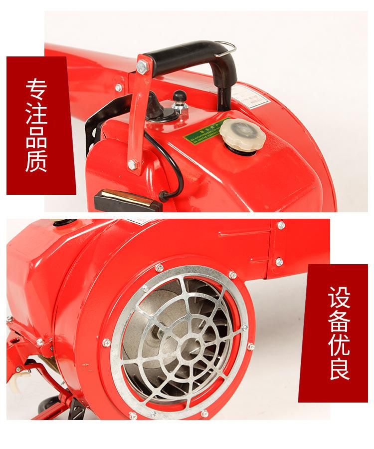 Cárter de aleación de aluminio y magnesio, velocidad del aire de salida 125 m/s; flujo de aire de salida ≥ 0,44 m3/s; velocidad del aire ≥ 30 m/s a 2,5 m del centro del ventilador; distancia del extintor ≥ 2,1 metros, tiempo de arranque ≤ 10 S; tasa de consumo de combustible 490 g/kw.h; modo de trabajo: portátil; modo de transmisión: accionamiento directo; modo de arranque: arranque con cuerda de tracción manual; combustible: gasolina 90# y aceite de motor de gasolina de dos tiempos mezclados en una relación de volumen de 20:1 o gasolina 90# 10# aceite de motor de automóvil mezclado en una relación de volumen de 18:1; temperatura de arranque (Celsius) -30~40; ruido: 105 db; aceleración de vibración transmitida a mano a la velocidad nominal ≤ 30 m/s.