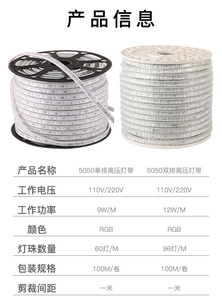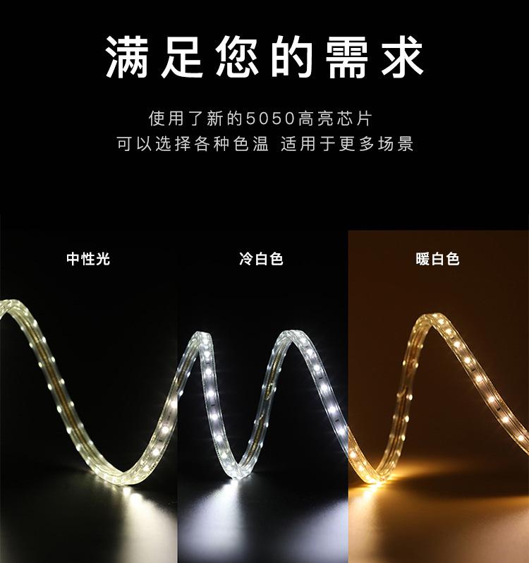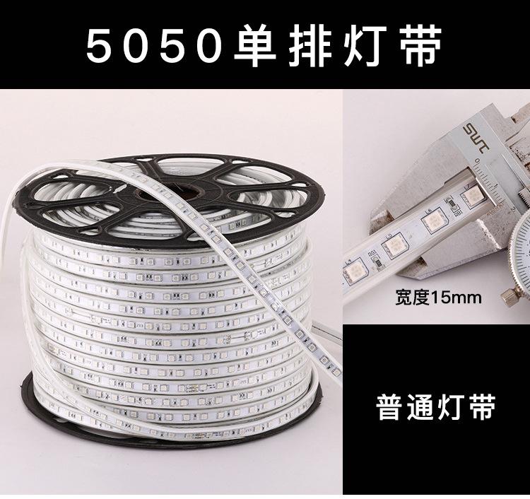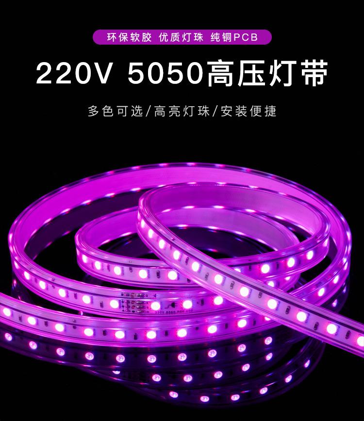 Tira de luces LED monocromáticas de alto voltaje para exteriores, 220 V, 5050 RGB, resistente al agua, flexible y suave.