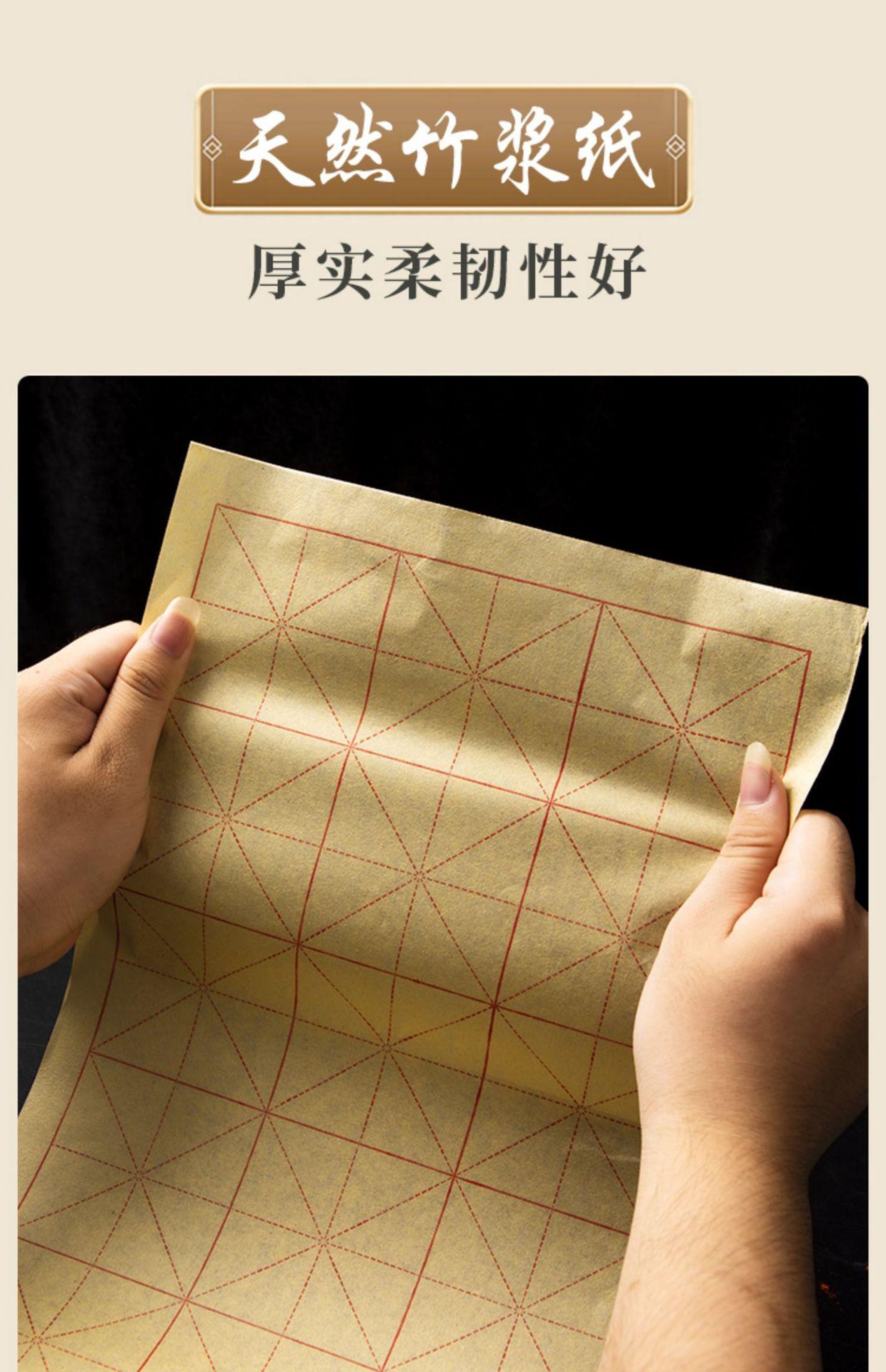 Papel de Arroz de Borde Rugoso al por Mayor Cuadrículas para Práctica de Caligrafía Pulpa de Bambú Papel de Arroz Amarillo Papel para Clase de Entrenamiento Papel Grueso para Práctica de Caligrafía con Pincel