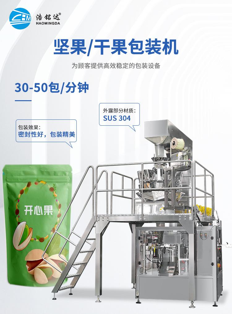 Equipo de envasado de frutos secos en bolsas para alimentos de la fábrica Haomingda, máquina de envasado de partículas cuantitativa a escala multicabezal.