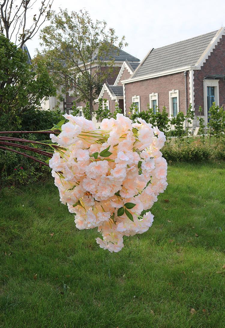 Fábrica de flores de simulación de boda al por mayor con hojas de cerezo de colores, flores de seda, flores decorativas para salón de bodas, flores artificiales