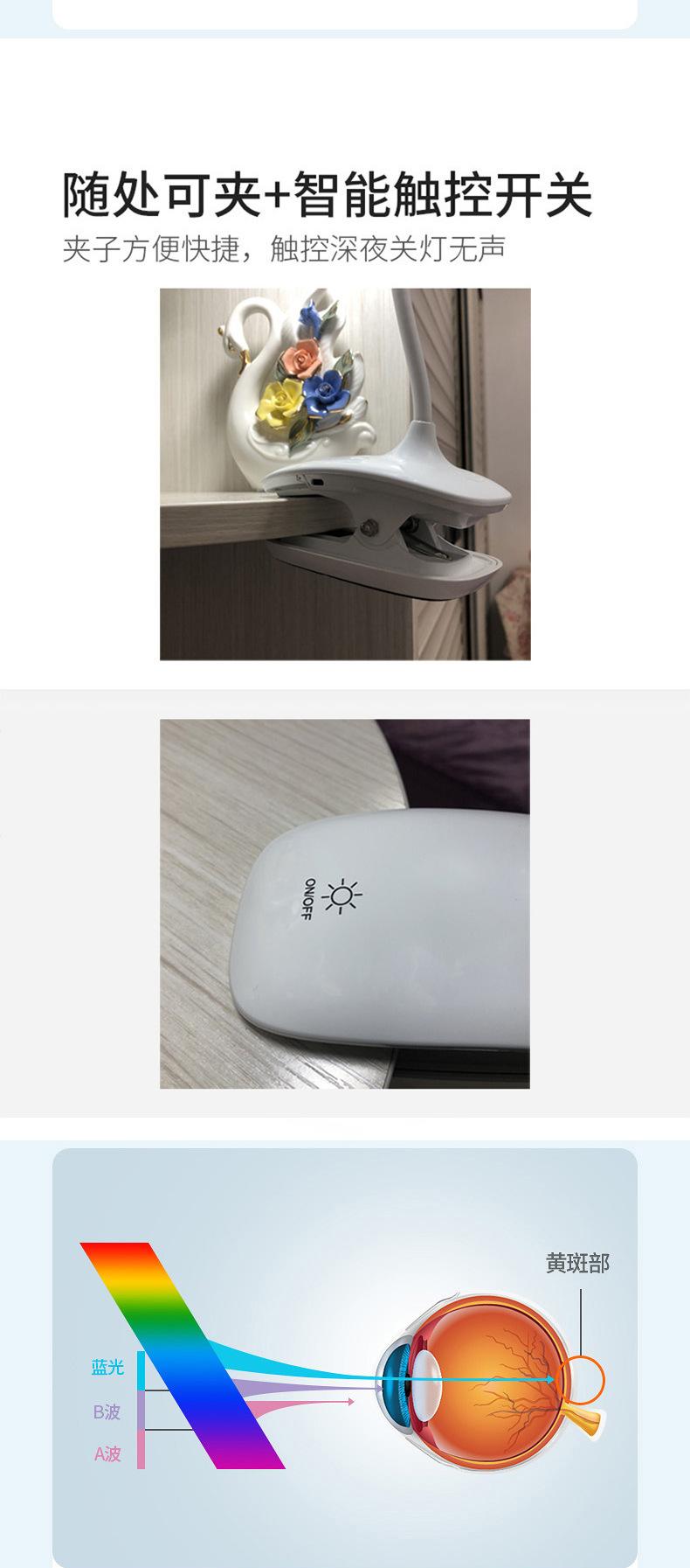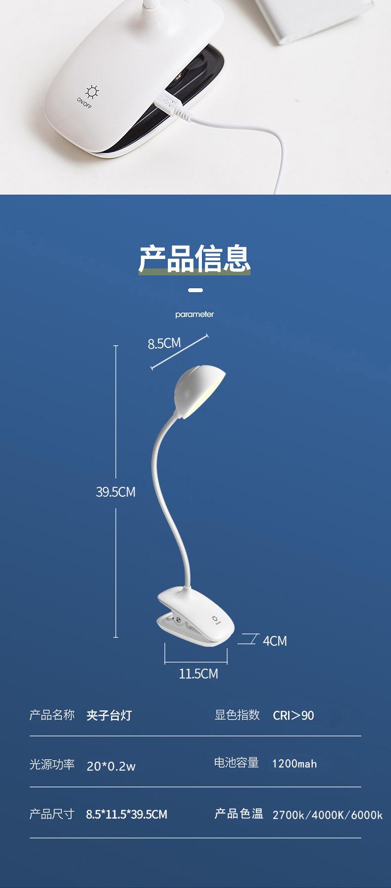 Lámpara de escritorio LED recargable con clip para dormitorio, mesita de noche, regalo para estudiantes, lámpara de lectura con protección ocular, fábrica al por mayor
