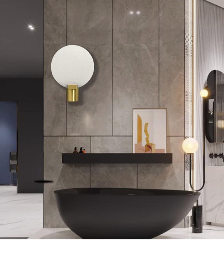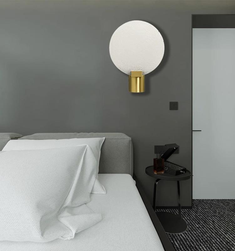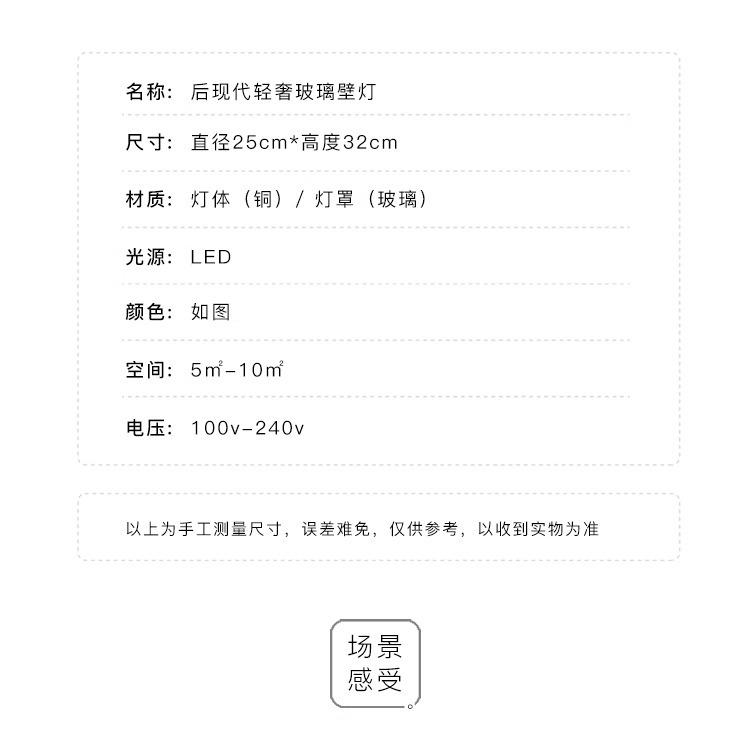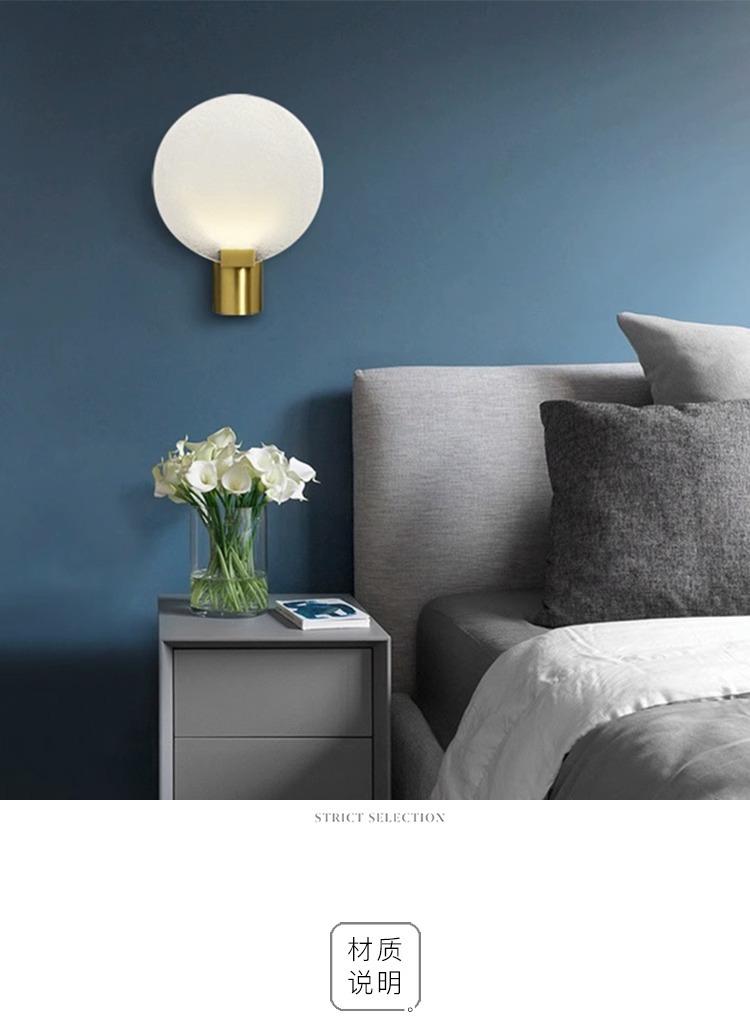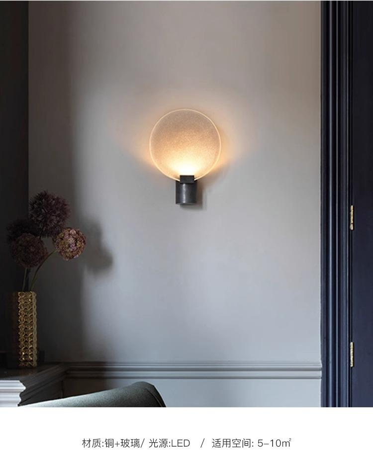 Lámpara de pared de fondo para sala de estar, de cobre, de lujo, con luz posmoderna, LED, simple, de vidrio, para pasillo, dormitorio, lámpara de pared de noche