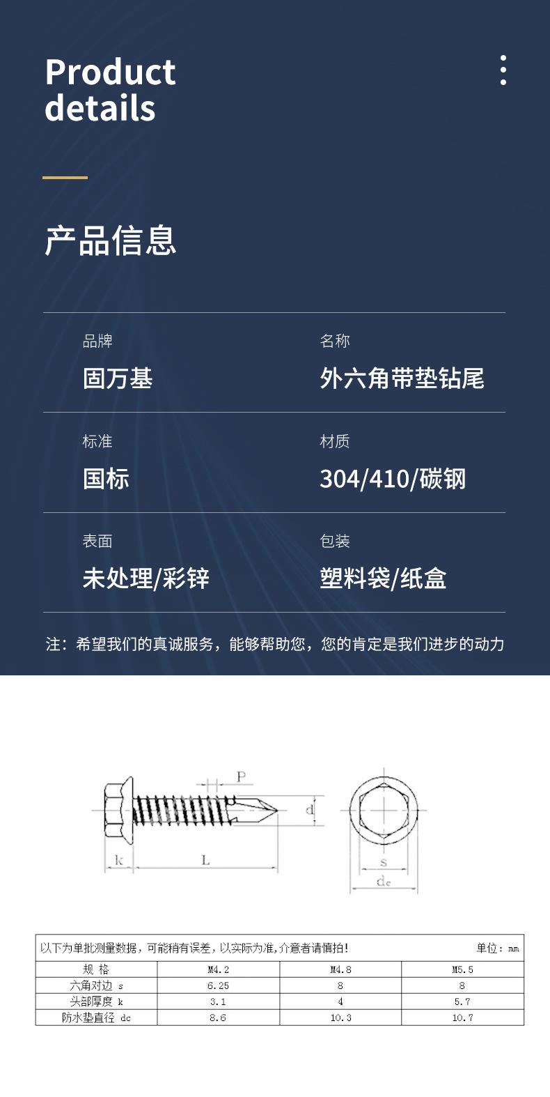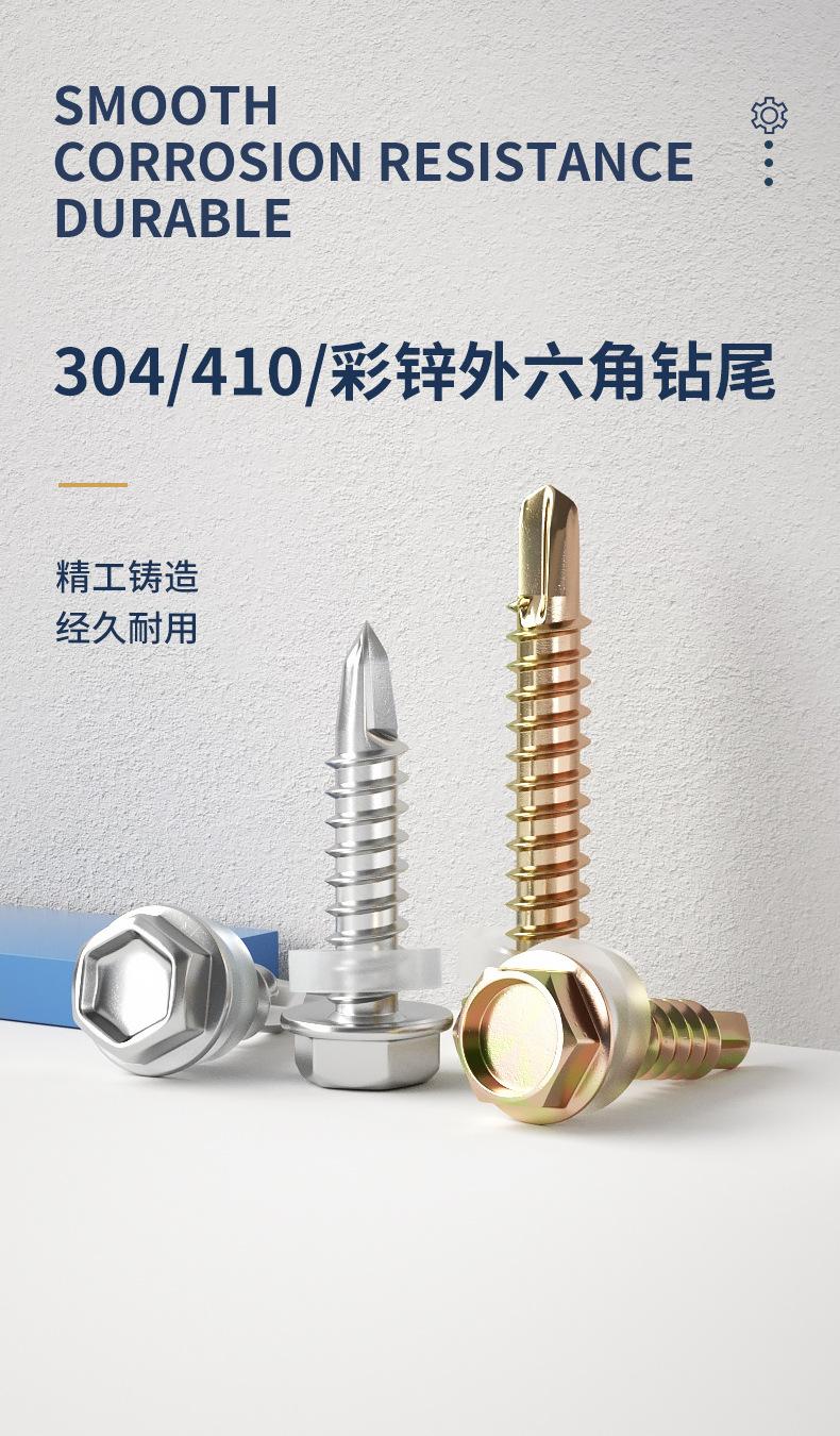 Compra Tornillo autorroscante de cabeza hexagonal exterior de acero inoxidable 410 con almohadilla, tornillo de cola de milano Huashi Meson M5.5 al por mayor en Joom.pro