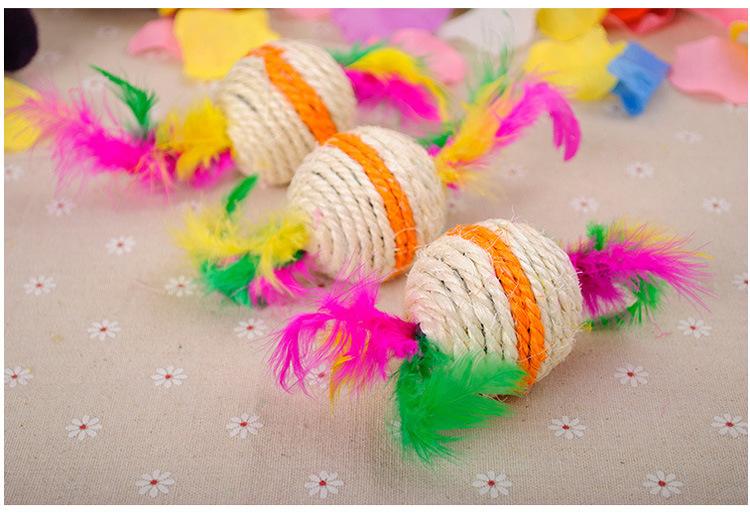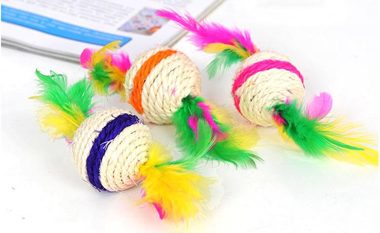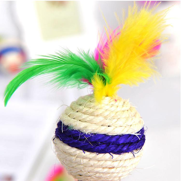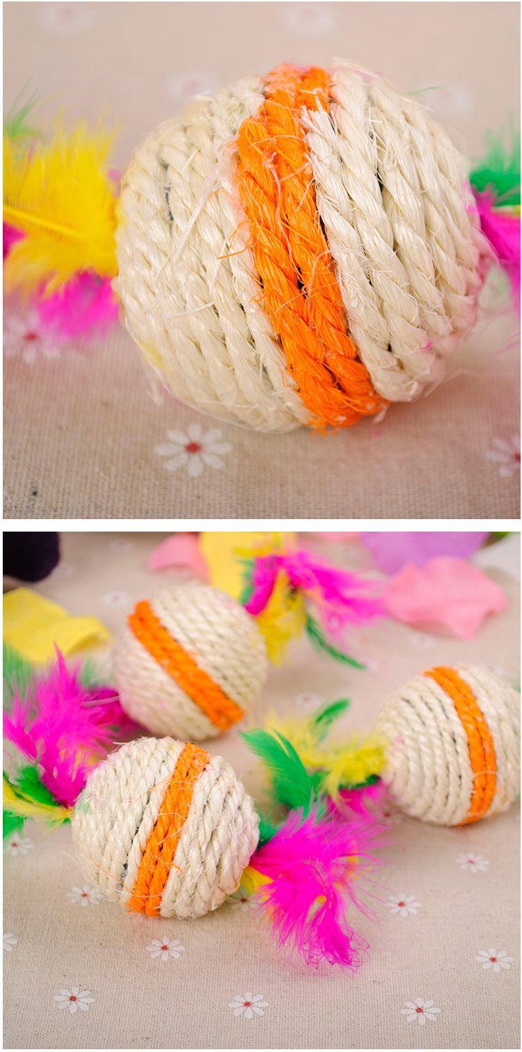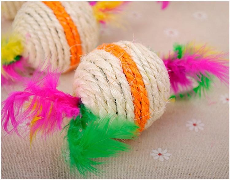 Compra Juguete para gatos con forma de pluma de sisal, bola de cuerda de cáñamo, bola hueca con sonido, juguete para gatos al por mayor en Joom.pro