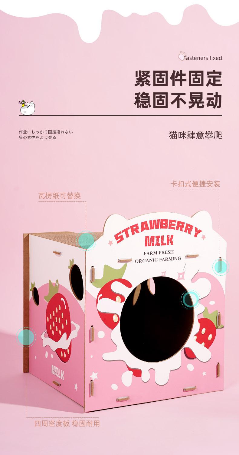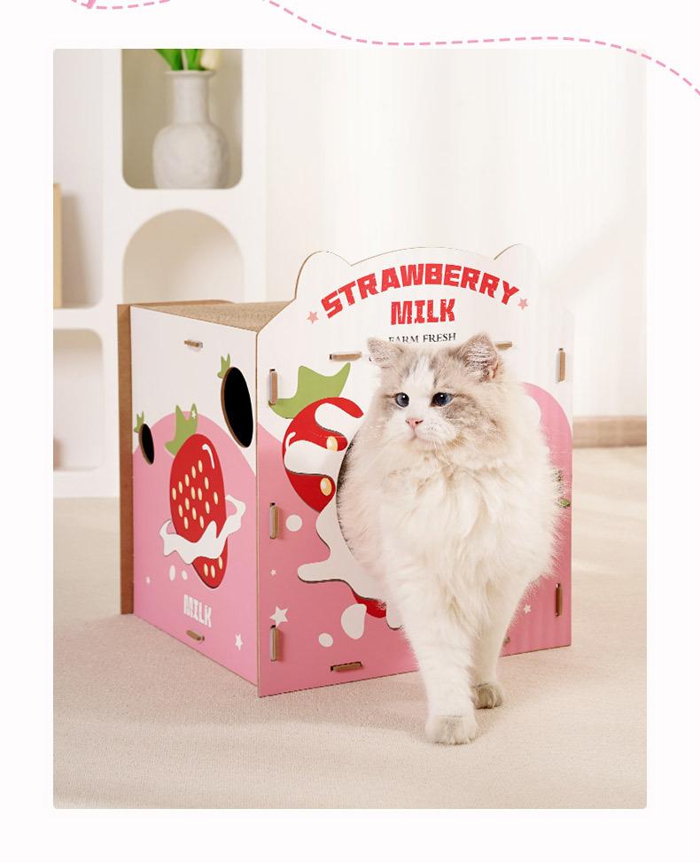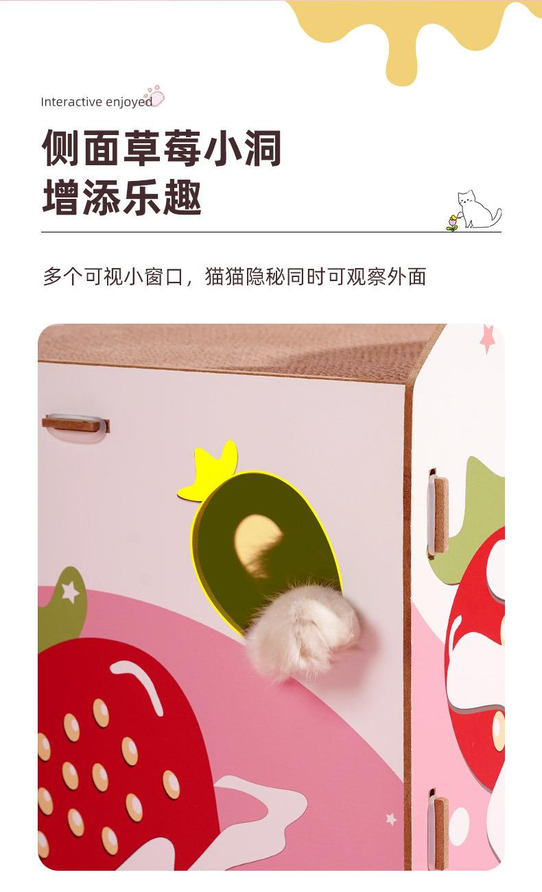 Rascador de cartón corrugado grande para gatos con forma de fresa, nido para gatos integrado, resistente a arañazos y al desgaste, caja de cartón de doble capa, casa de juguete para gatos con garras para moler