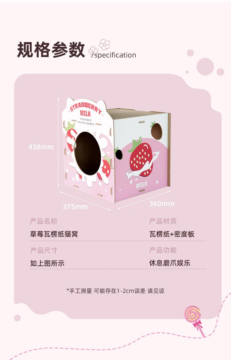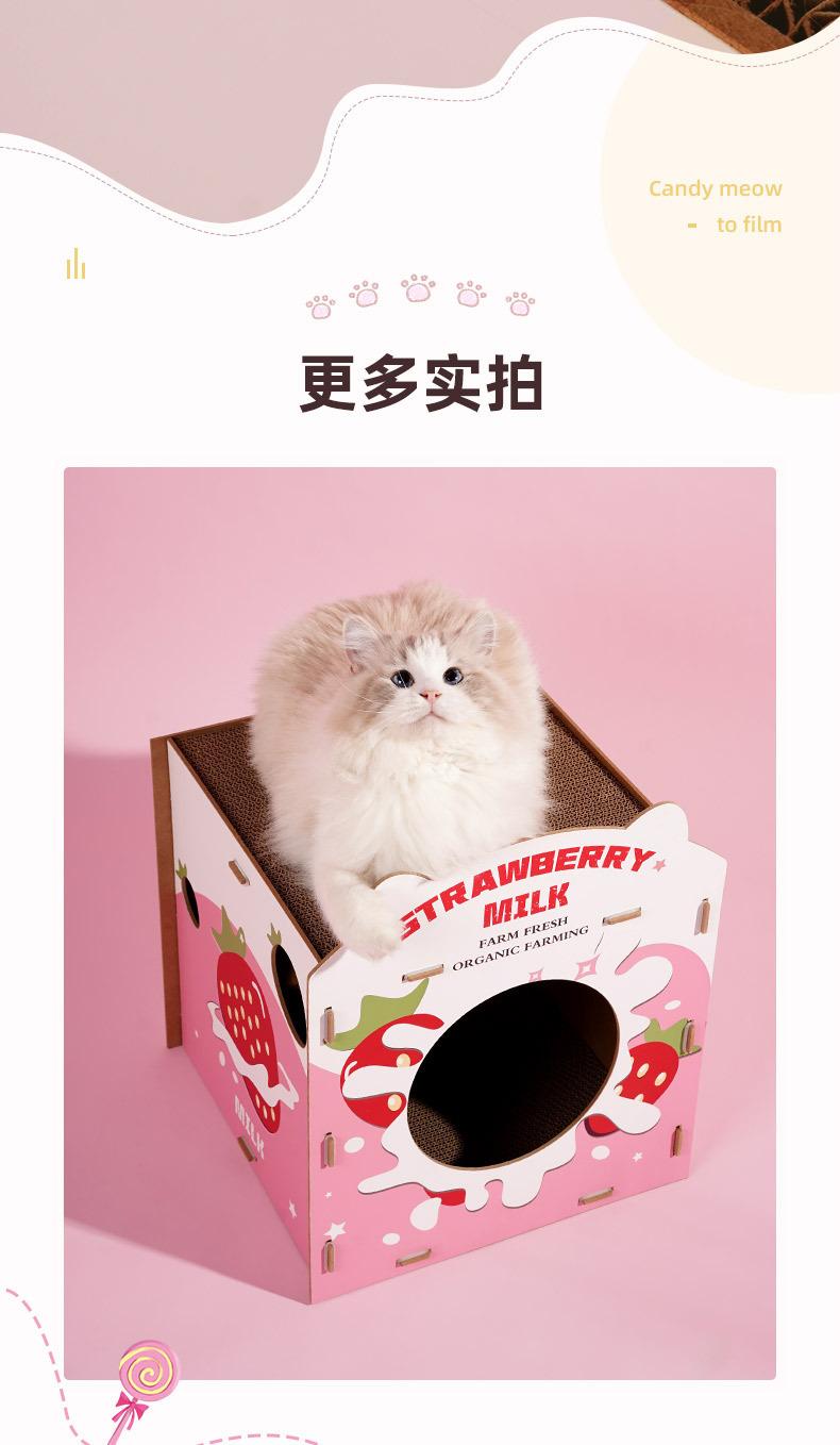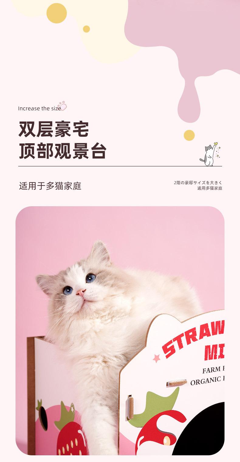 Rascador de cartón corrugado grande para gatos con forma de fresa, nido para gatos integrado, resistente a arañazos y al desgaste, caja de cartón de doble capa, casa de juguete para gatos con garras para moler