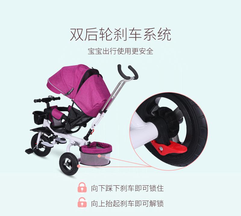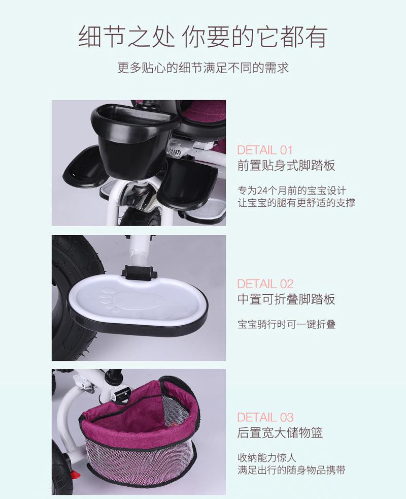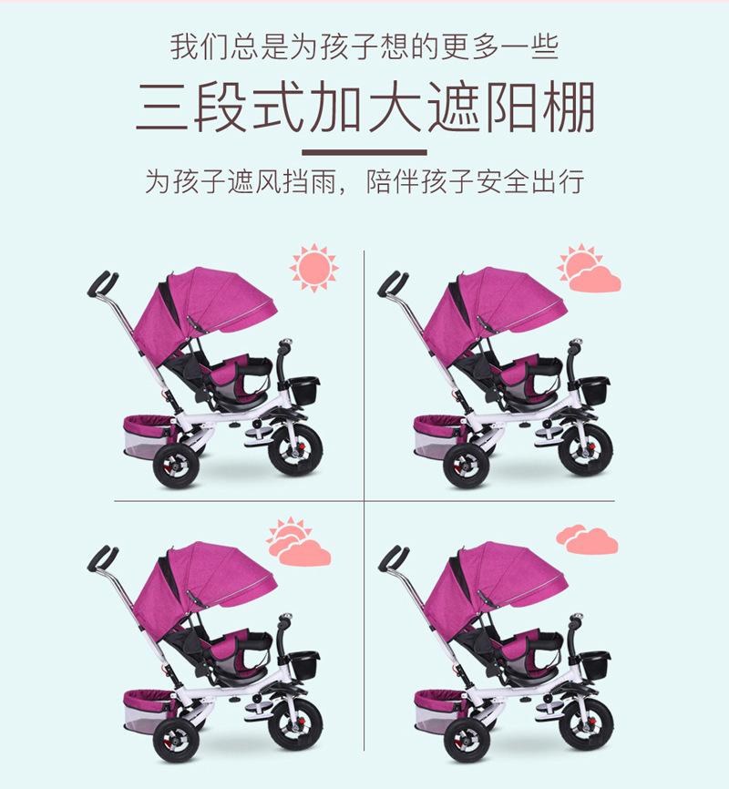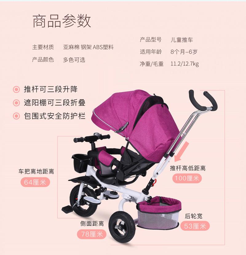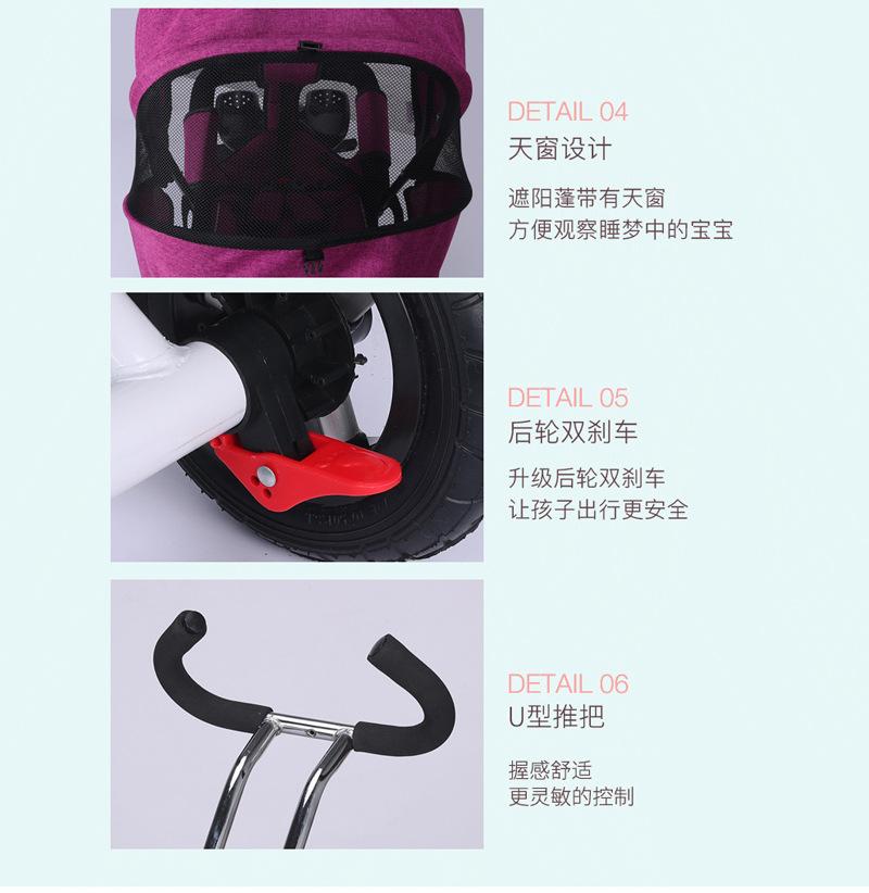 1. Puede sentarse, montar, empujar, todas las partes se pueden desmontar, la barandilla del cobertizo se puede desmontar en un triciclo simple para montar de forma independiente
