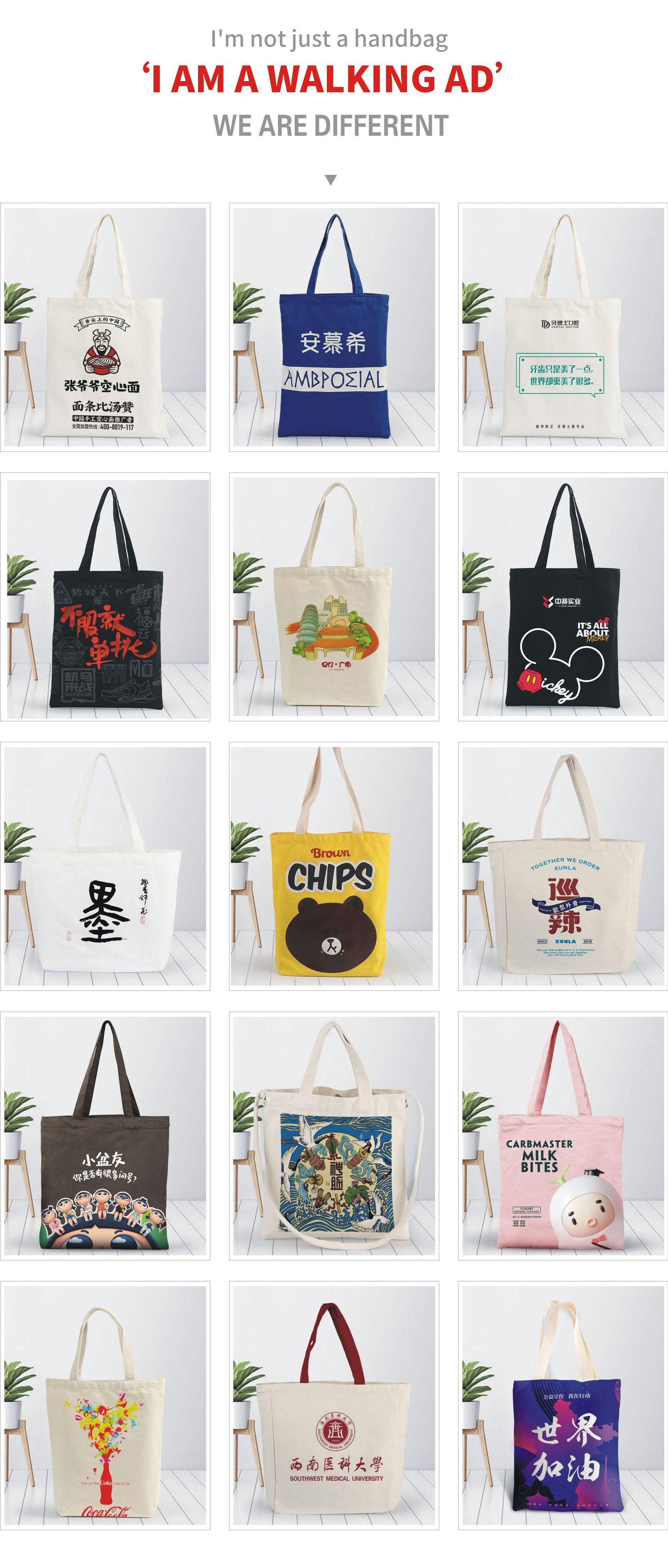 Bolsa de lona portátil, bolsa de compras publicitaria creativa, bolsa de algodón portátil para estudiantes, se puede imprimir el logotipo