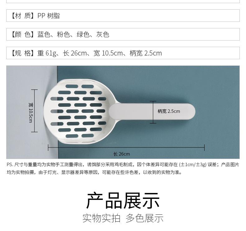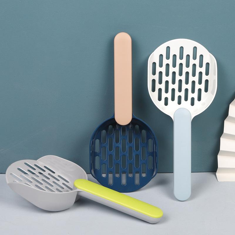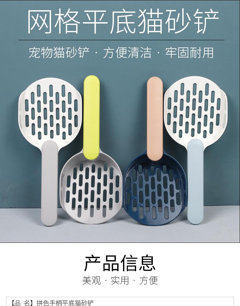 [Nombre del producto] Pala para arena para gatos de fondo plano con mango a juego de colores empacada en bolsa
