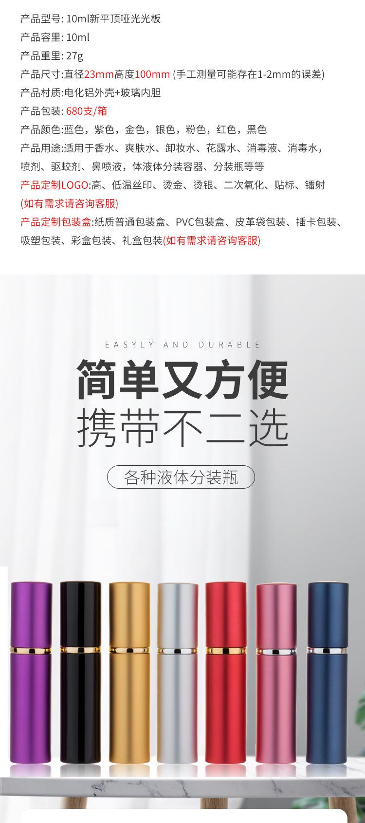 Botella de Perfume en Spray de 10 ml Carcasa de Aluminio Botella de Embalaje de Perfume Botella Recargable de Aceite Esencial Líquido Suministro Exclusivo Portátil Transfronterizo