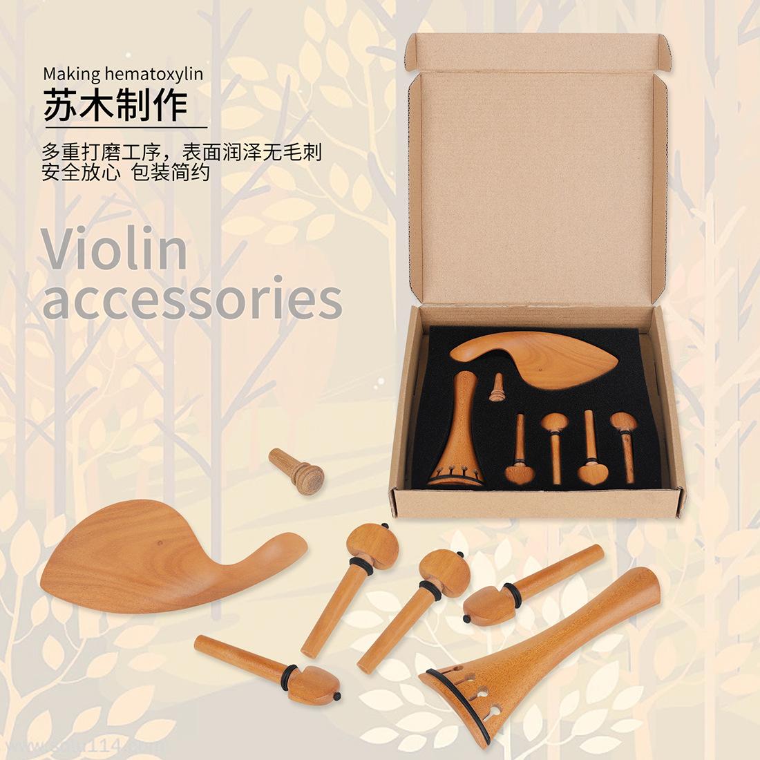 Accesorios para violín Juego de 4 piezas de ébano con incrustaciones de madera Su CL-100 (cordal + clavija de cuerda + clavo de cordal + mentonera) 4/4-3/4 |