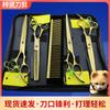 El set incluye unas tijeras rectas de 7 pulgadas y unas tijeras curvas, unas tijeras de entresacar de 6.5 pulgadas, una botella de aceite para tijeras, un paño de limpieza y una herramienta de ajuste de tuercas.