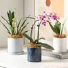 Maceta Cerámica Grande con Plato, Estilo Nórdico Simple y Lujoso, Maceta Especial para Orquídeas con Borde Dorado, Juego de Macetas Pequeñas al por Mayor