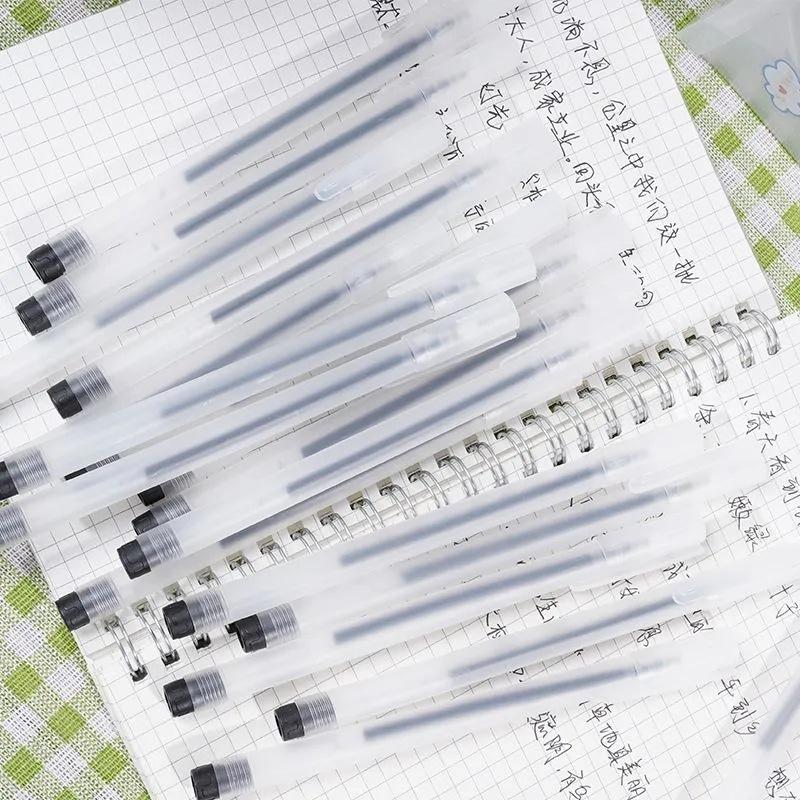 Bolígrafo Transparente Blanco Escarchado 0.5 Bolígrafo de Gel Punta de Aguja Bolígrafo de Firma Bolígrafo de Carbón Negro para Estudiantes