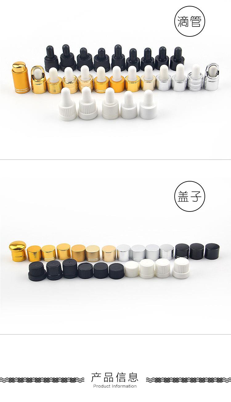 Brown bottle + anodized aluminum cap (gold/silver/black) + inner stopper * 5ml essential oil bottle (765 pcs/piece) * glass