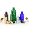 Venta al por mayor de aceites esenciales Botella vacía de vidrio transparente para aceites esenciales Botella ámbar sellada con gotero Botellas dispensadoras azul y verde