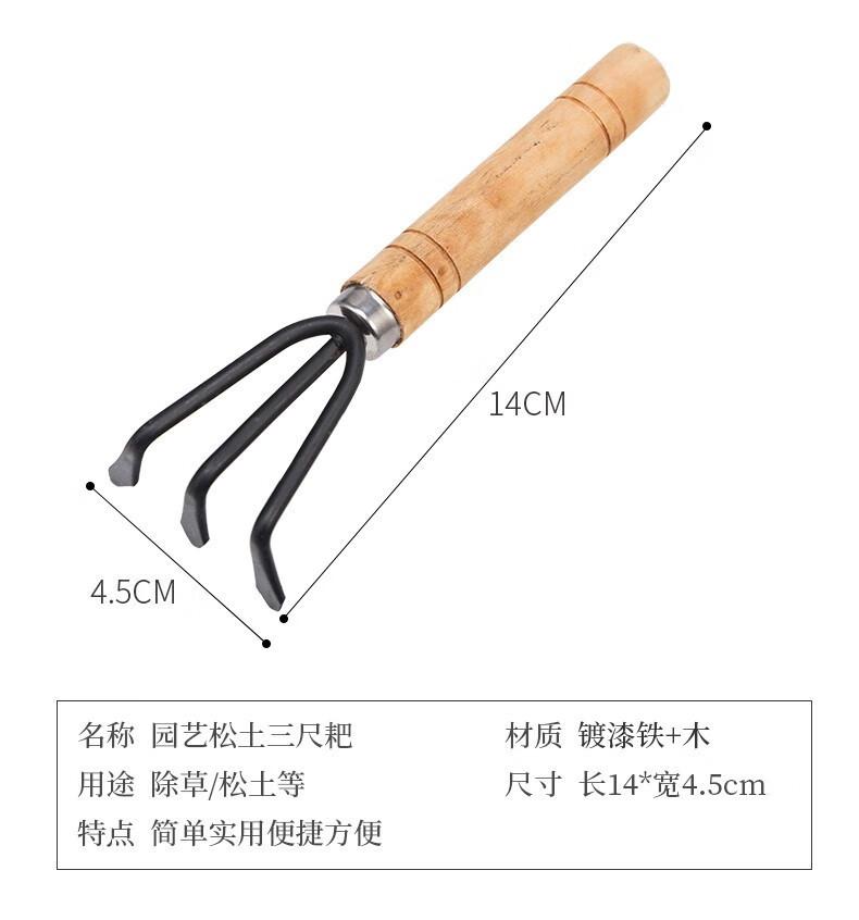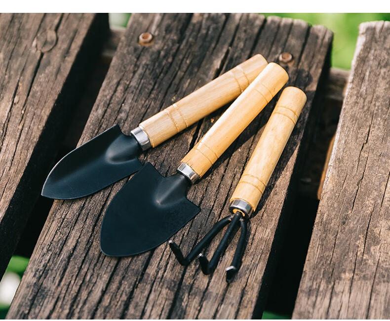 Herramientas de jardinería, juego de tres piezas de rastrillo para plantar flores, plantar vegetales, flores, suculentas, pala pequeña, pala pequeña, suministros para macetas.