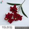 Orquídea de hadas de 9 cabezas, narcisos extranjeros de varias cabezas, diseño de salón de banquetes para auditorio de bodas, flores de simulación, guía de ruta de hotel, arreglo floral, flores falsas