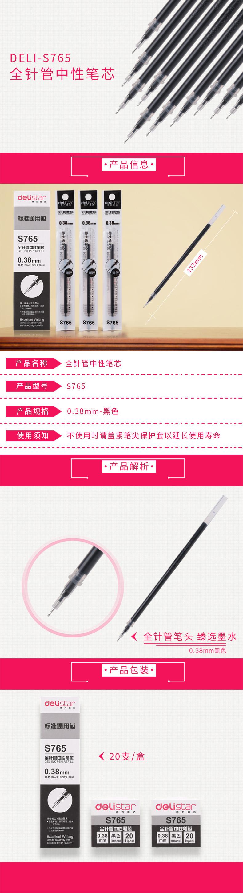 Recambio de Bolígrafo de Gel Deli S765 0.38mm Recambio de Tubo de Aguja Completa Fino Financiero Estudiante Suministros de Oficina Recambio de Repuesto para Bolígrafos de Base Agua