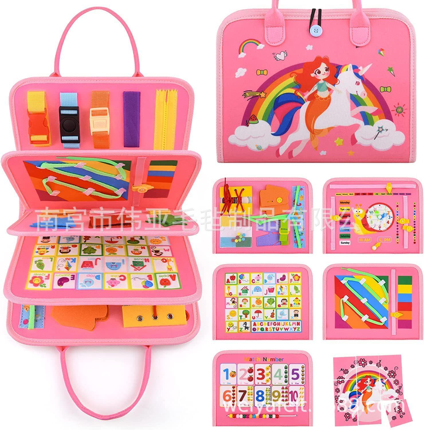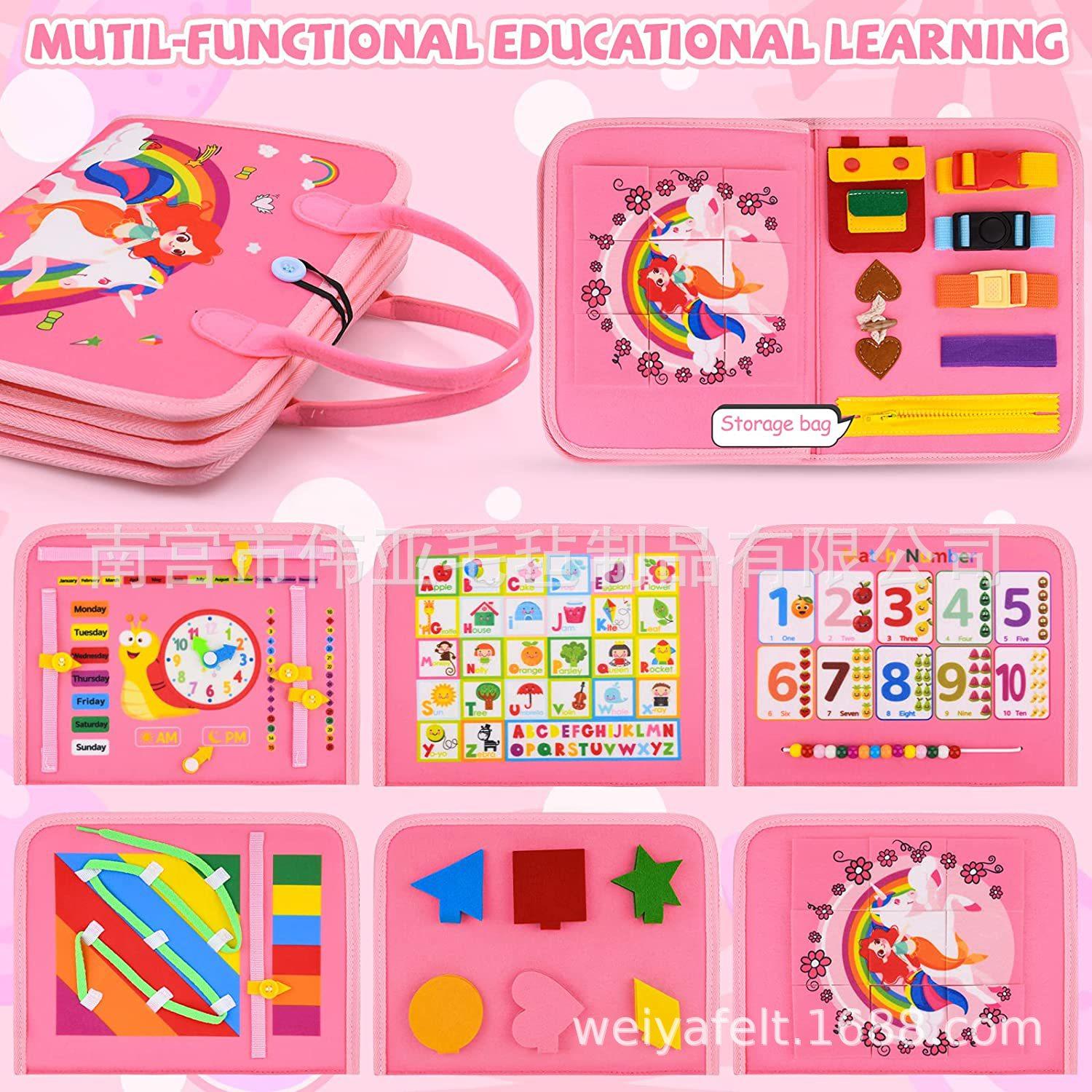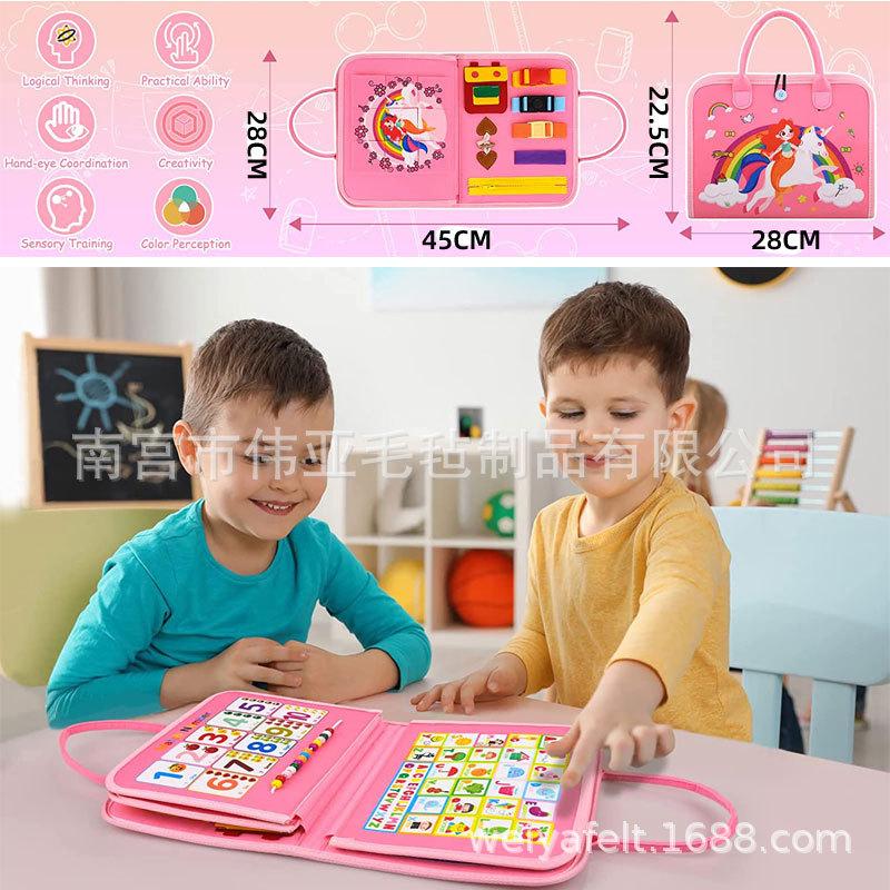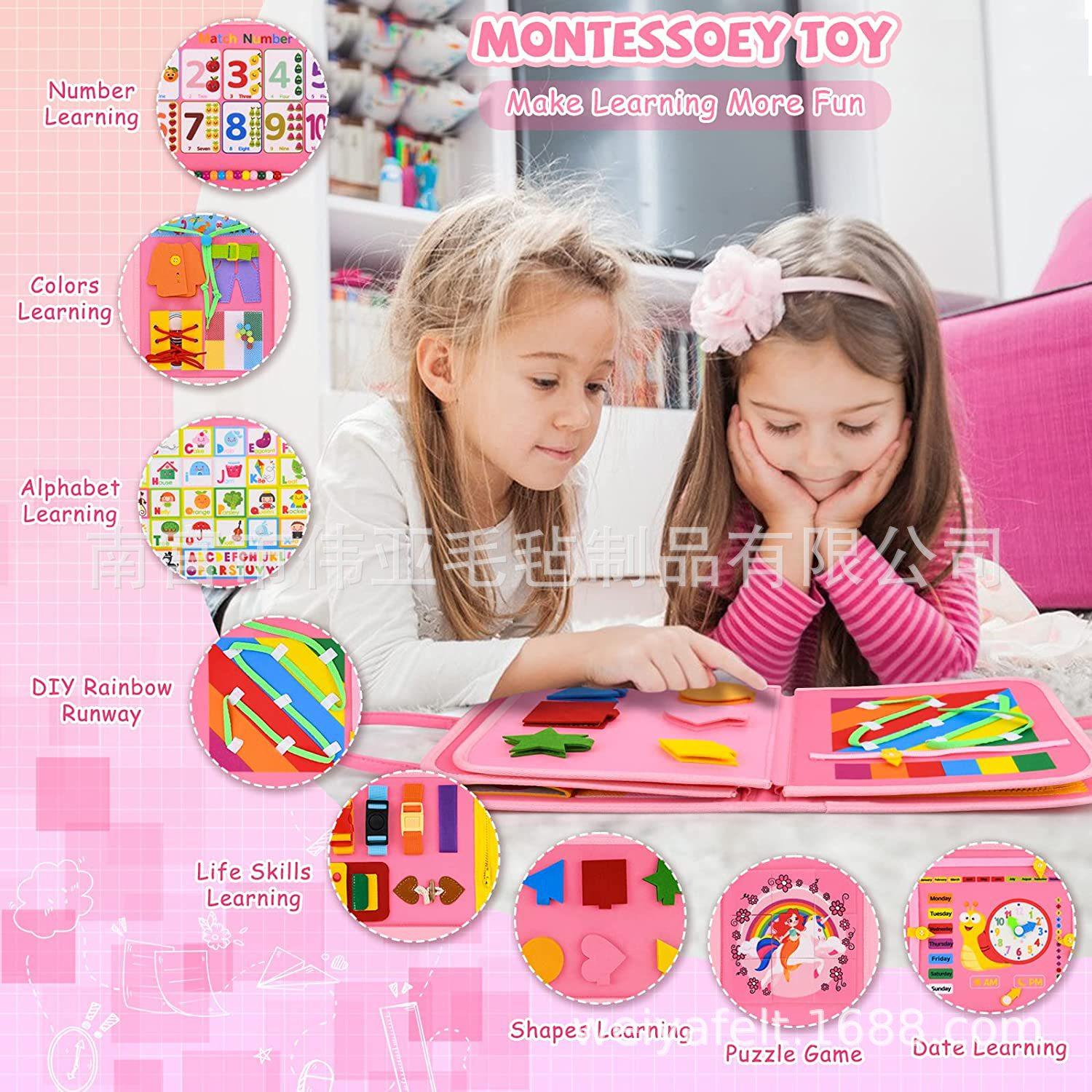 Tablero de aprendizaje de fieltro transfronterizo para niños en edad preescolar, tablero de fieltro educativo para niños en edad preescolar, tablero de formación Montessori para niños en edad preescolar.