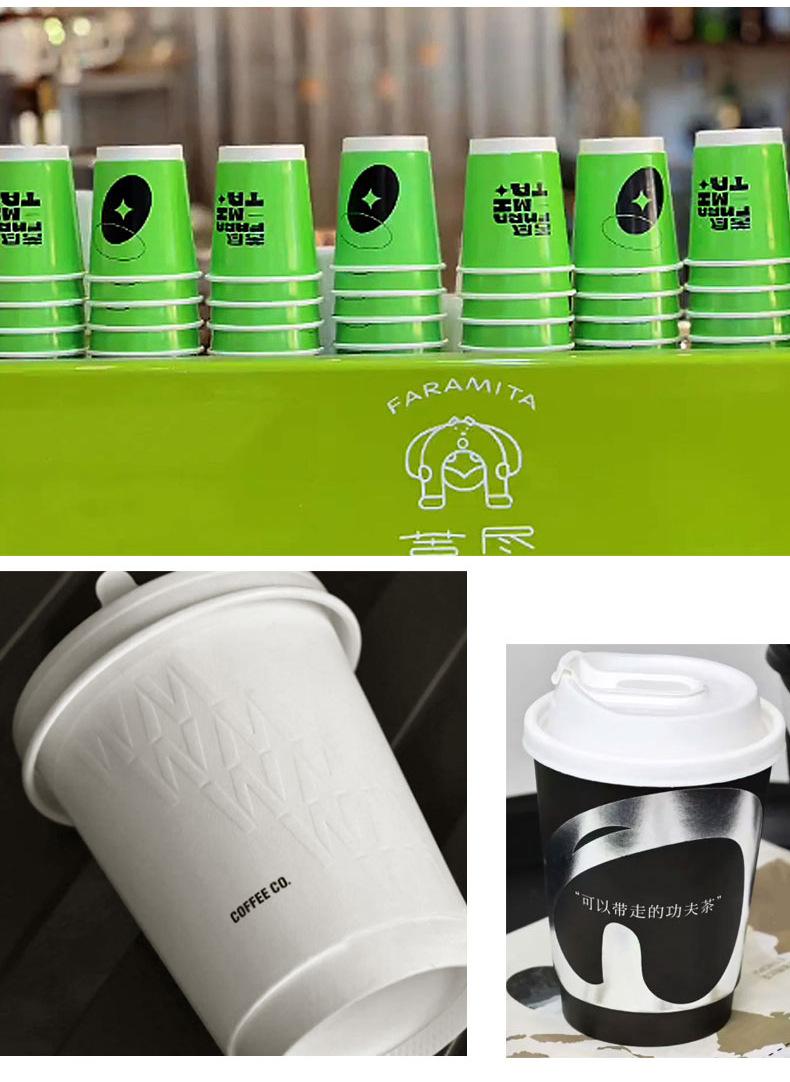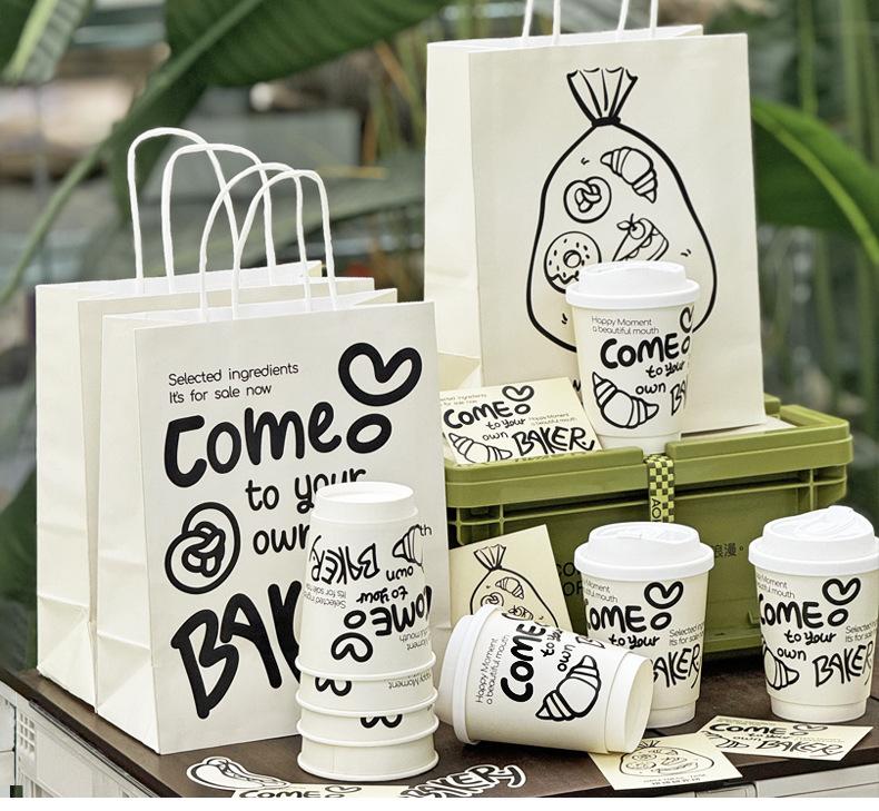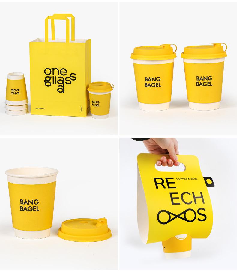 Taza de café desechable, leche, té, vaso de papel con tapa, color de alto valor, bolsa llamativa, bolsa para llevar, bolsa de embalaje, impresión comercial, logotipo
