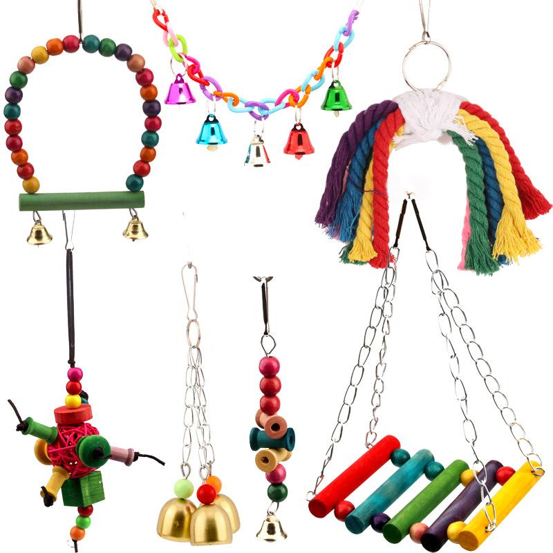 Juguete para morder de loro, juguete para pájaros, columpio, puente colgante, cuerda de algodón, cuerda para tirar, juego de 7 piezas