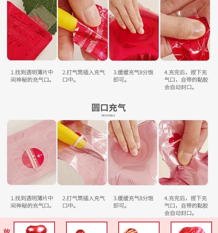 1. Inflado del globo: Nuestros globos de película de aluminio son autosellantes y fáciles de inflar y sellar. Pueden usarse repetidamente. Después de inflarlos, presione el puerto de inflado con los dedos para sellarlos automáticamente. Infle el globo al 90 % de su capacidad para evitar que se reviente durante la producción.