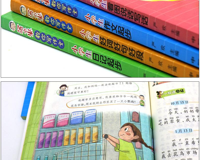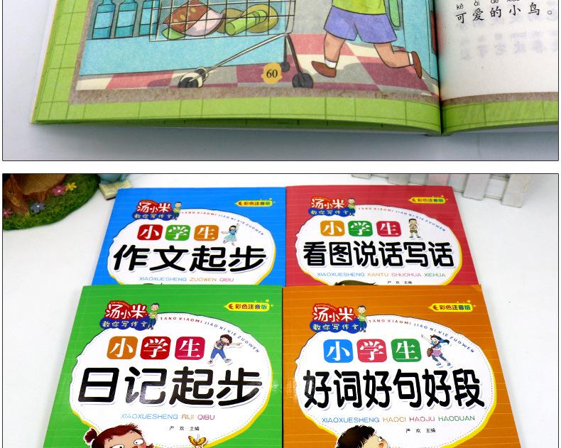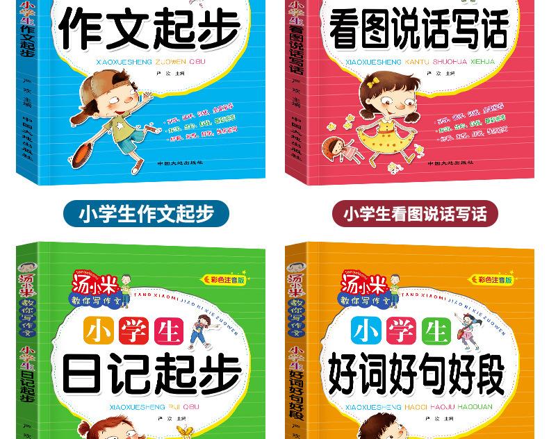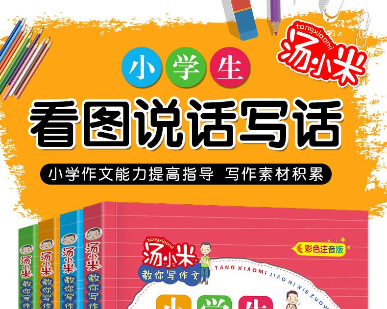 Tang Xiaomi te enseña a escribir una composición. (los 4 volúmenes) Los estudiantes de primaria leen imágenes, hablan y escriben palabras.