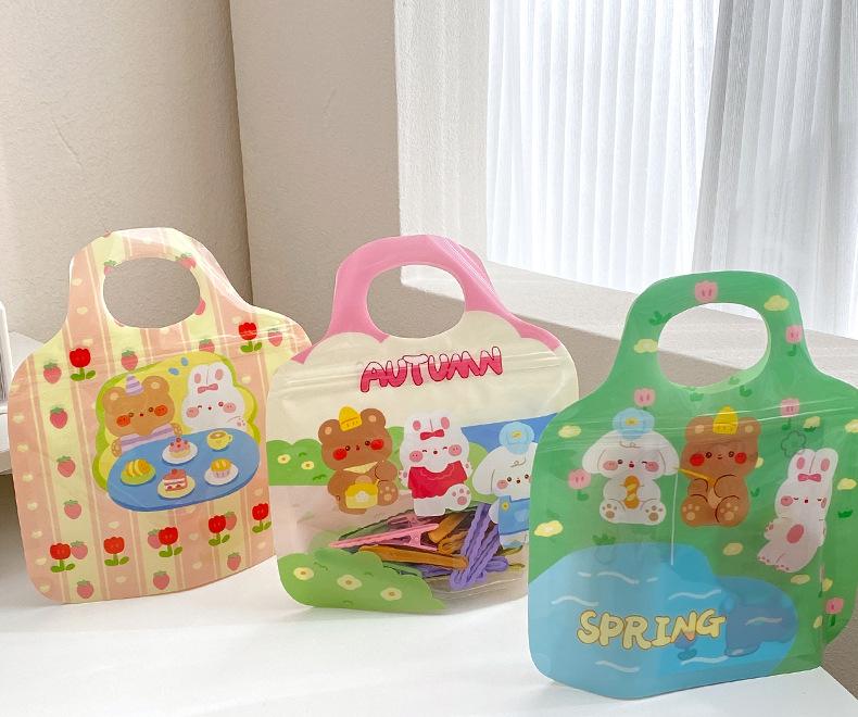 Portable ziplock bag birthday party bear and bunny (3 types of mixed hair)*20*18+ bottom 6cm double layer 22 silk